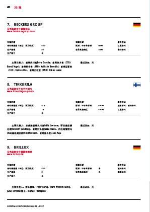 歐洲前25家涂料生產商排名