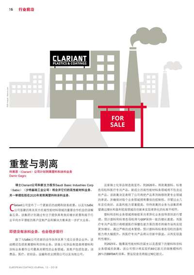 科萊恩(Clariant)公司計劃剝離塑料和涂料業務