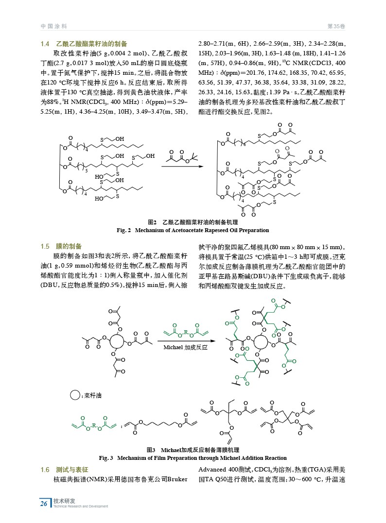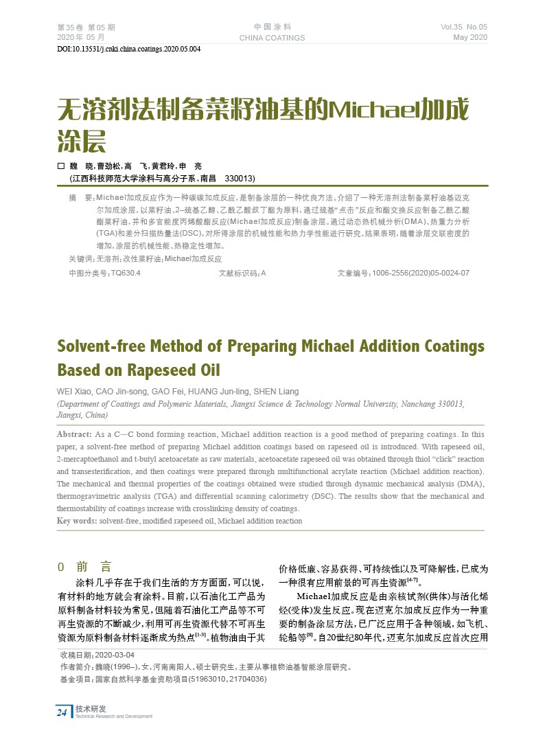 無溶劑法制備菜籽油基的Michael加成涂層