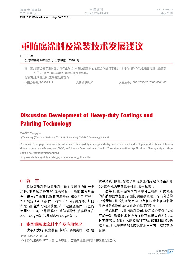 本文系作者@王慶軍 授權(quán)中國涂料網(wǎng)發(fā)表,并經(jīng)中國涂料網(wǎng)編輯,未經(jīng)允許不得轉(zhuǎn)載,如需轉(zhuǎn)載請聯(lián)系chinacoatingnet@vip.163.com