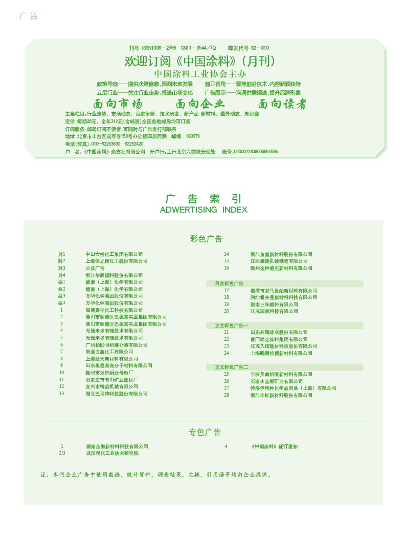 湖南金磐、武漢現代工業技術研究院、《中國涂料》征訂通知