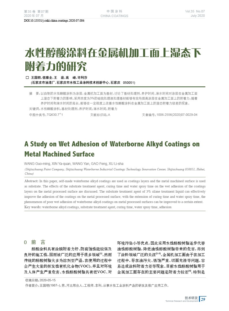 發表于2020-10-16 10:22:00| 次閱讀| 來源中國涂料| 作者王國明,信雅全,王 巖,高 峰,許利莎