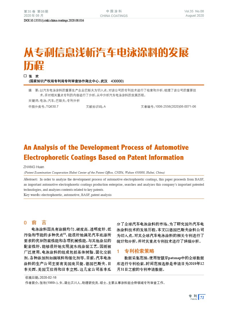 從專(zhuān)利信息淺析汽車(chē)電泳涂料的發(fā)展歷程