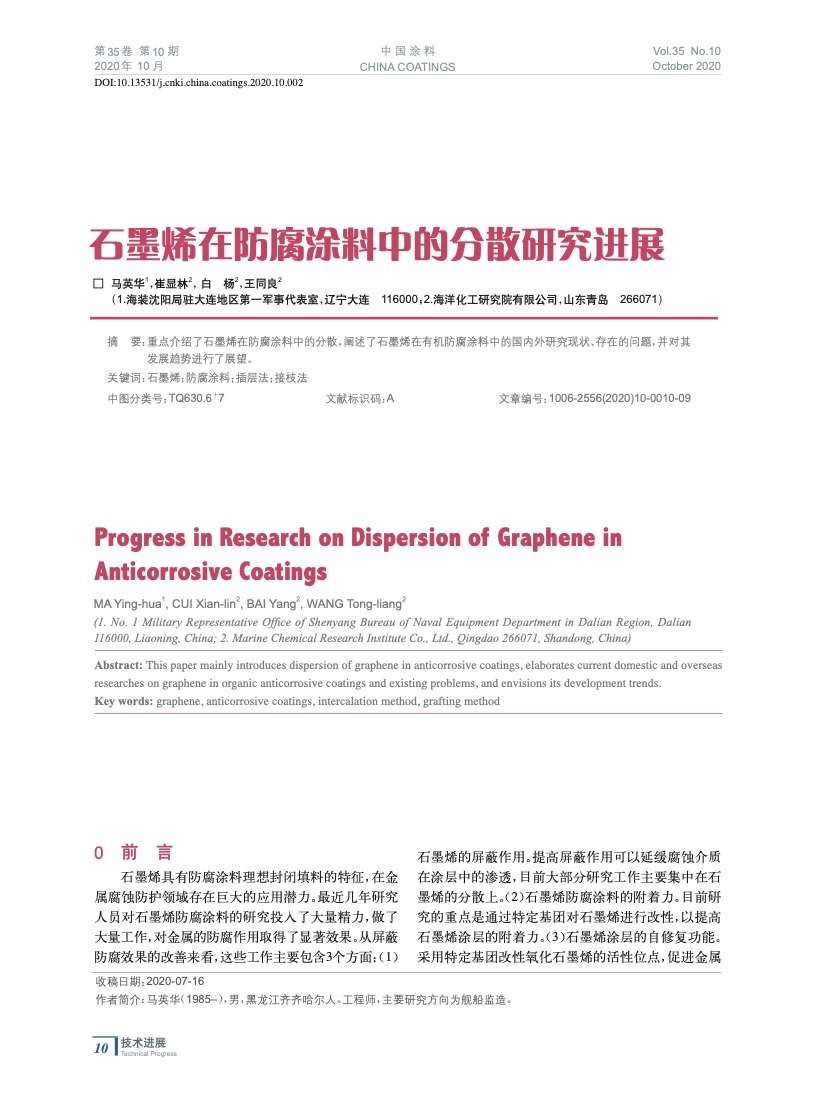 摘要:重點介紹了石墨烯在防腐涂料中的分散,闡述了石墨烯在有機防腐涂料中的國內(nèi)外研究現(xiàn)狀、存在的問題,并對其發(fā)展趨勢進行了展望。