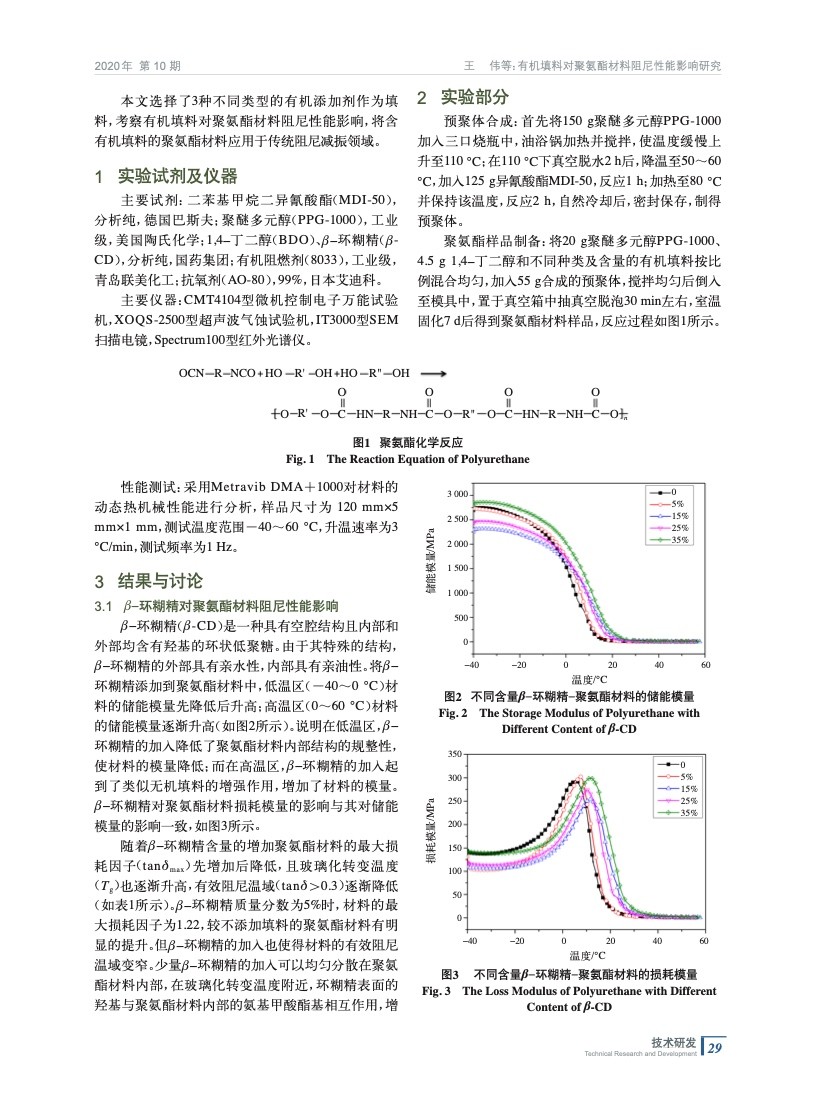 有機填料對聚氨酯材料阻尼性能影響研究