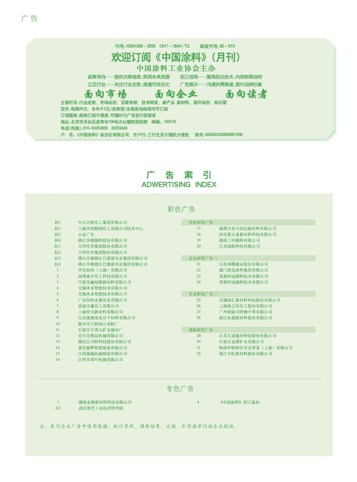湖南金磐、武漢現代、《中國涂料》征訂通知