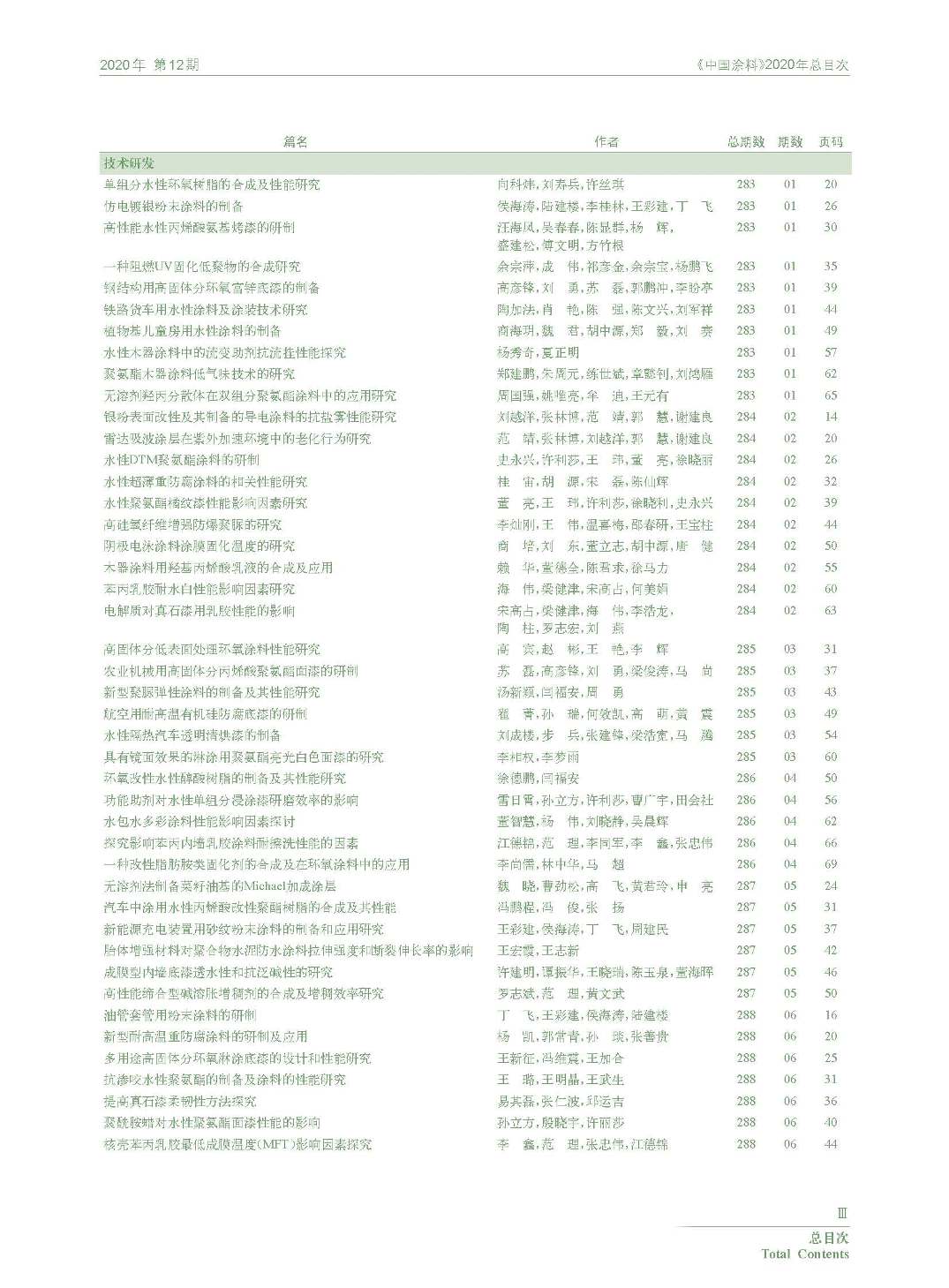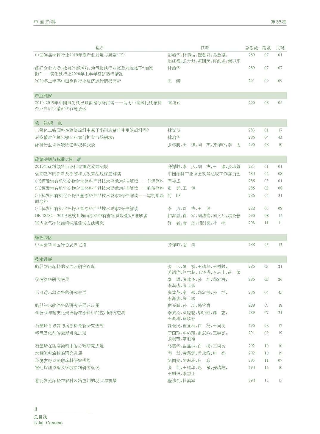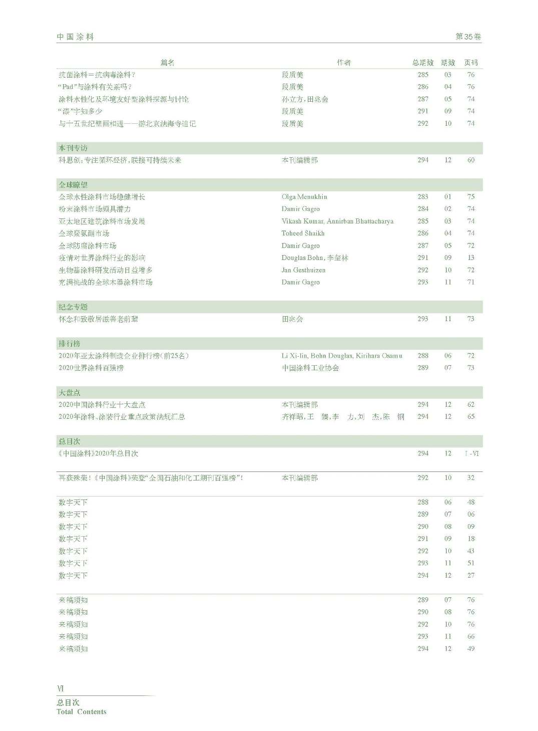 《中國涂料》2020年總目次