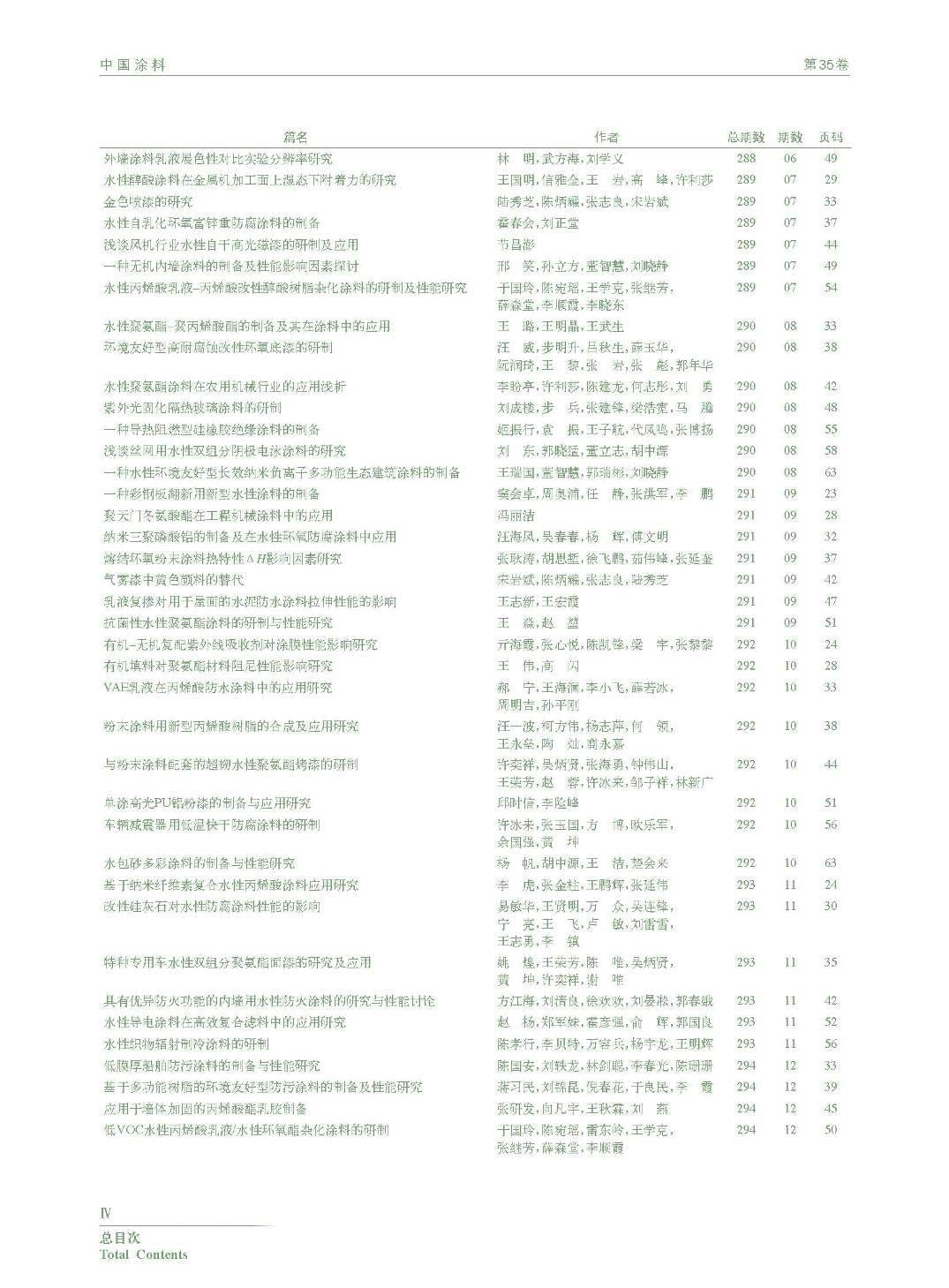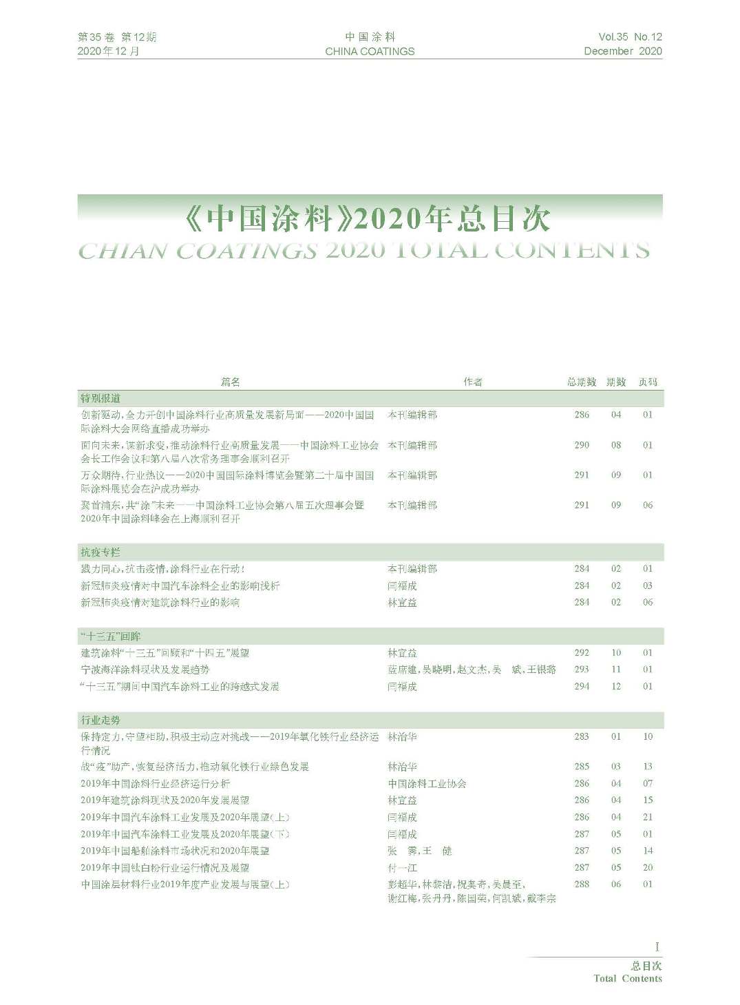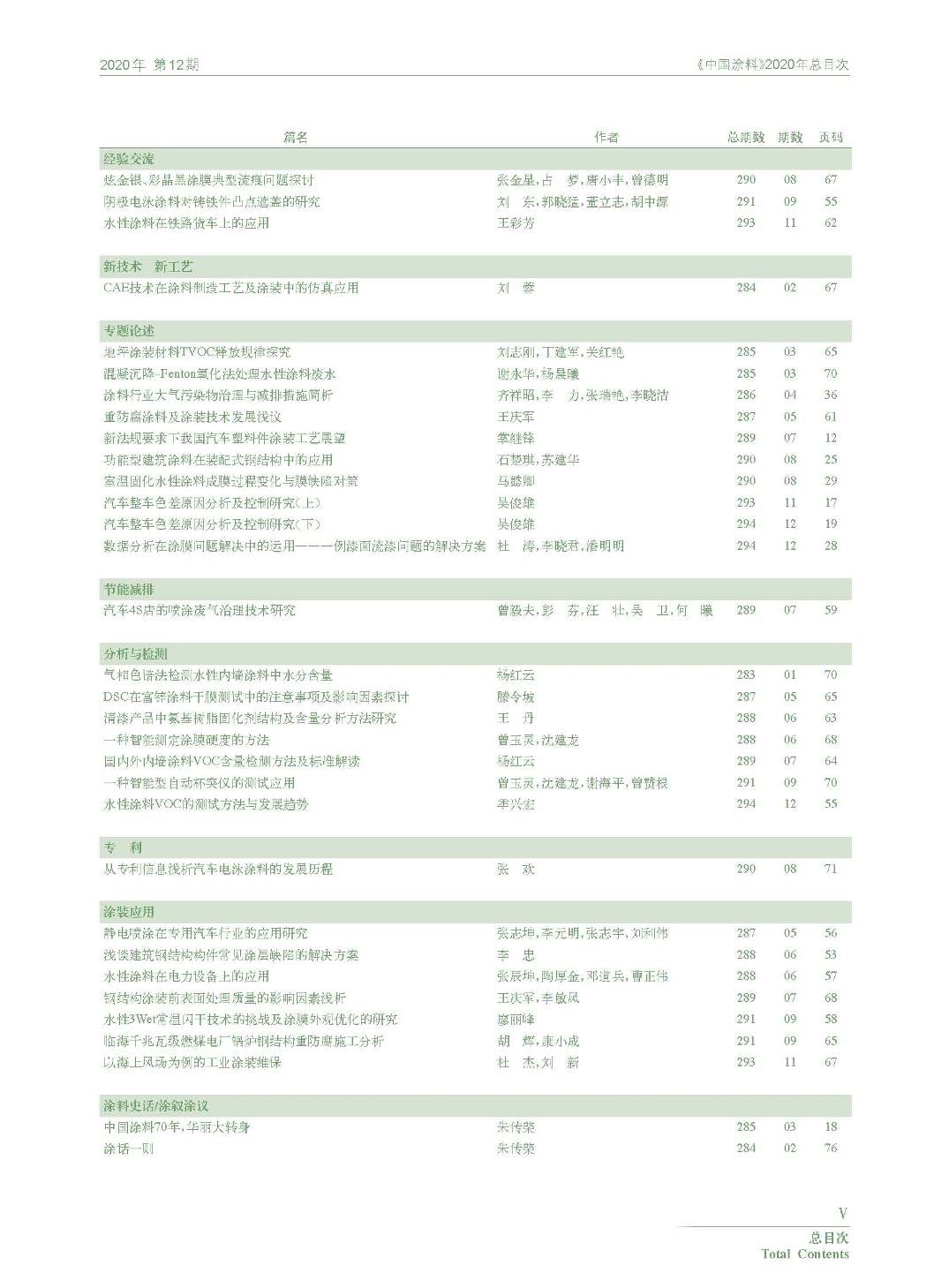 《中國涂料》2020年總目次