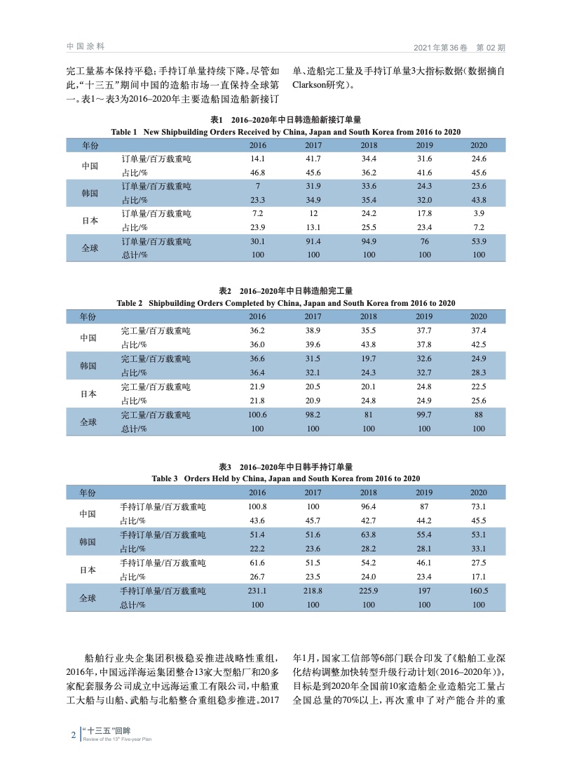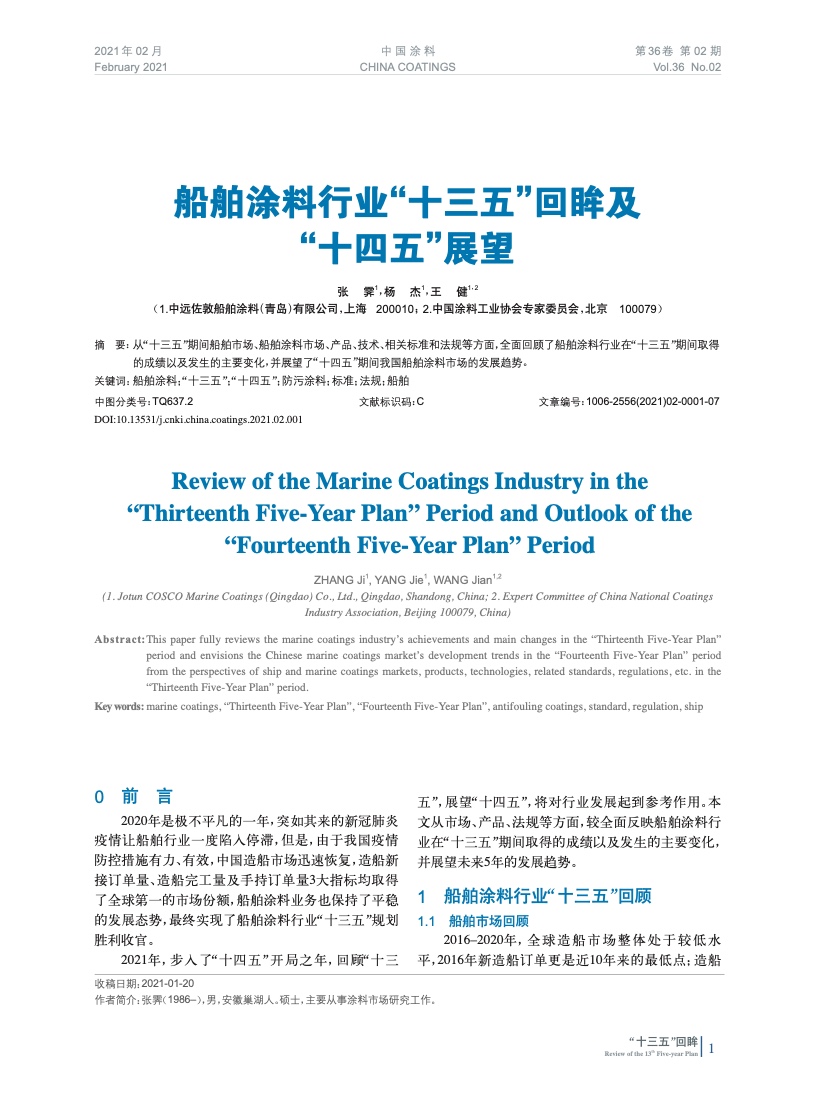 從“十三五”期間船舶市場、船舶涂料市場、產品、技術、相關標準和法規等方面,全面回顧了船舶涂料行業在“十三五”期間取得的成績以及發生的主要變化,并展望了“十四五”期間我國船舶涂料市場的發展趨勢。