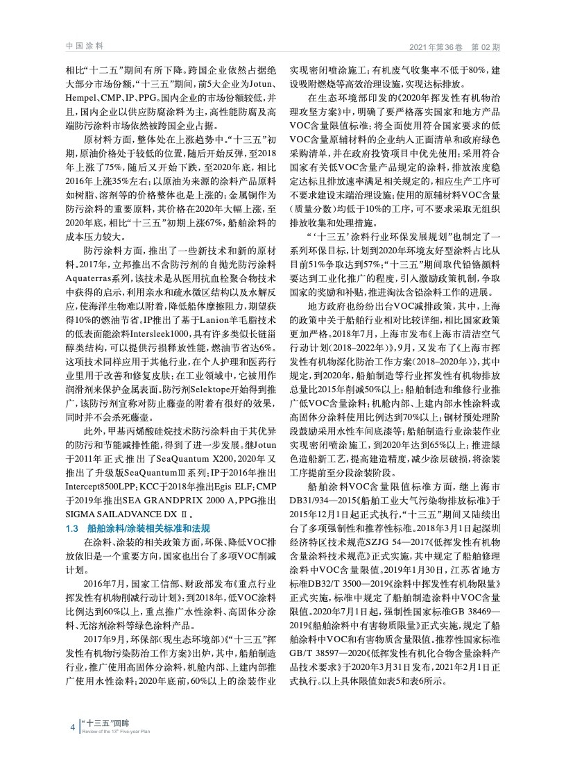 船舶涂料行業“十三五”回眸及“十四五”展望