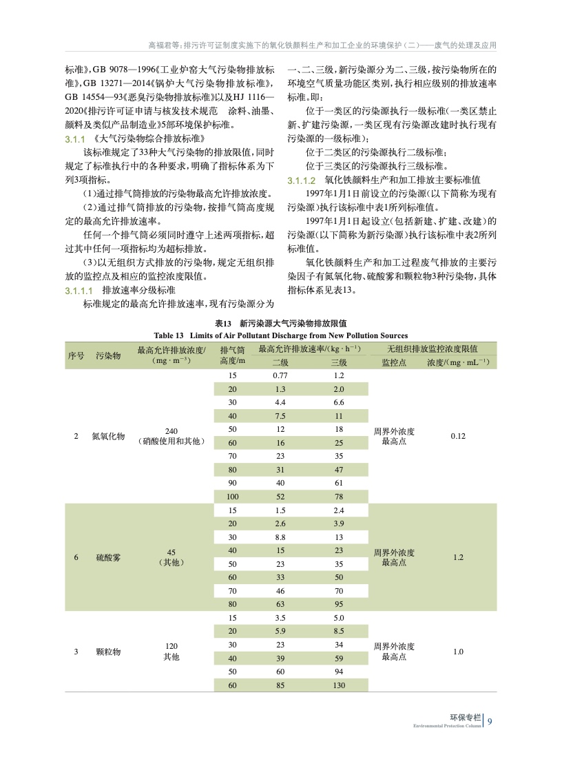 摘要:重點(diǎn)闡述了我國氧化鐵顏料生產(chǎn)和加工企業(yè)廢氣排放應(yīng)遵循的5部環(huán)境保護(hù)標(biāo)準(zhǔn)所含項(xiàng)目和限值要求,以及當(dāng)前氧化鐵顏料生產(chǎn)和加工廢氣的處理利用,比較了3種氧化鐵顏料生產(chǎn)工藝下的排氣污染因子與處理利用等情況,并指出各自的優(yōu)劣勢。
