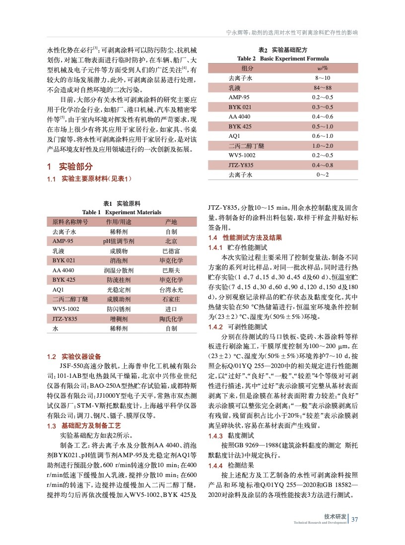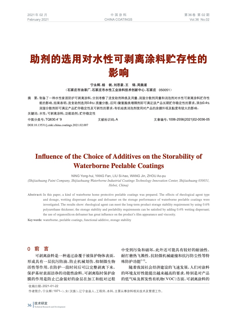 助劑的選用對(duì)水性可剝離涂料貯存性的影響