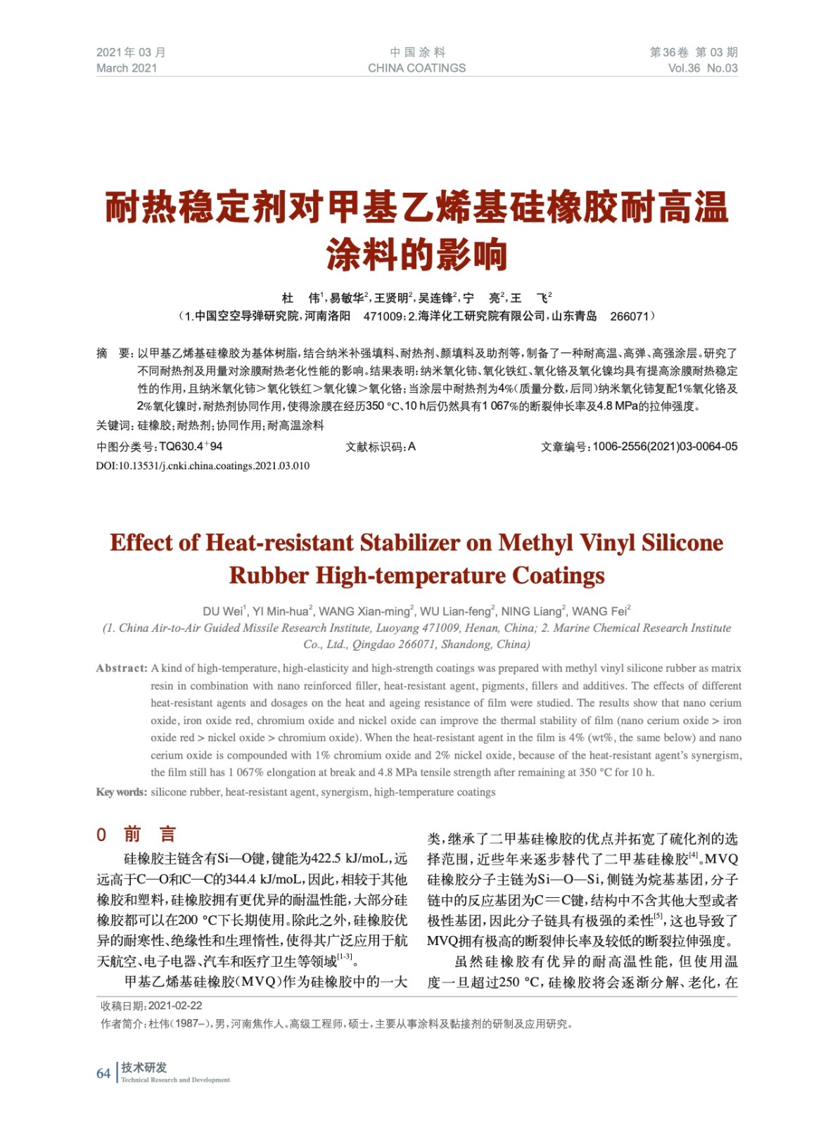 發表于2021-05-08 12:23:37| 次閱讀| 來源中國涂料| 作者杜 偉,易敏華,王賢明,吳連鋒,寧 亮,王 飛