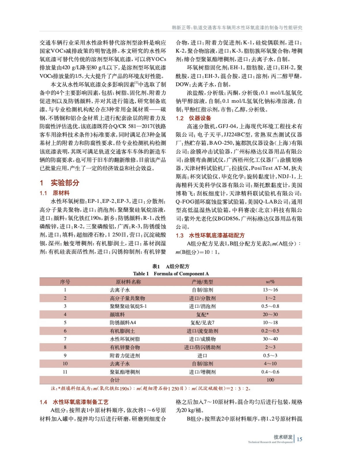 軌道交通客車車輛用水性環(huán)氧底漆的制備與性能研究