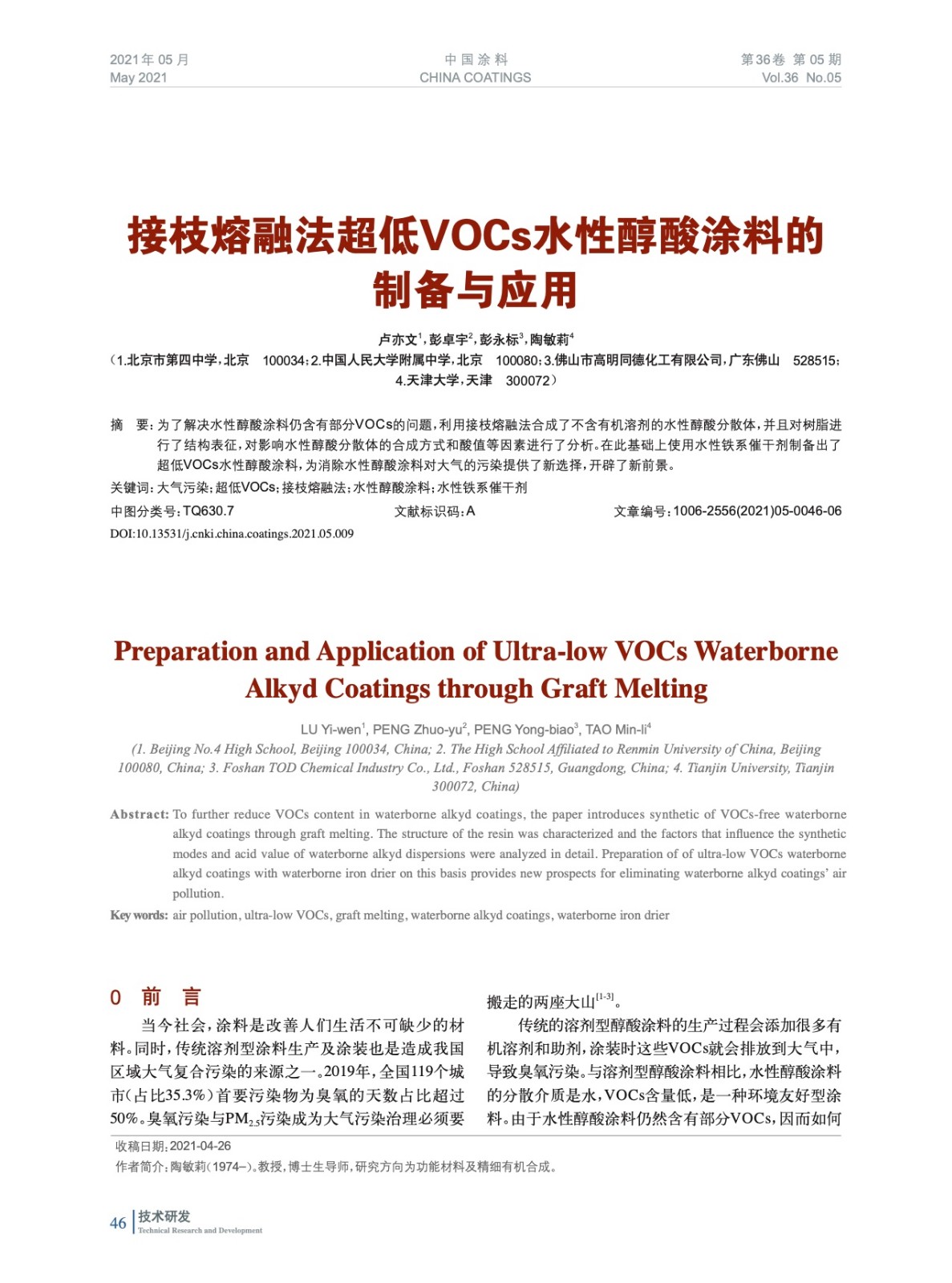 發(fā)表于2021-07-13 17:08:59| 次閱讀| 來源中國涂料| 作者盧亦文,彭卓宇,彭永標(biāo),陶敏莉