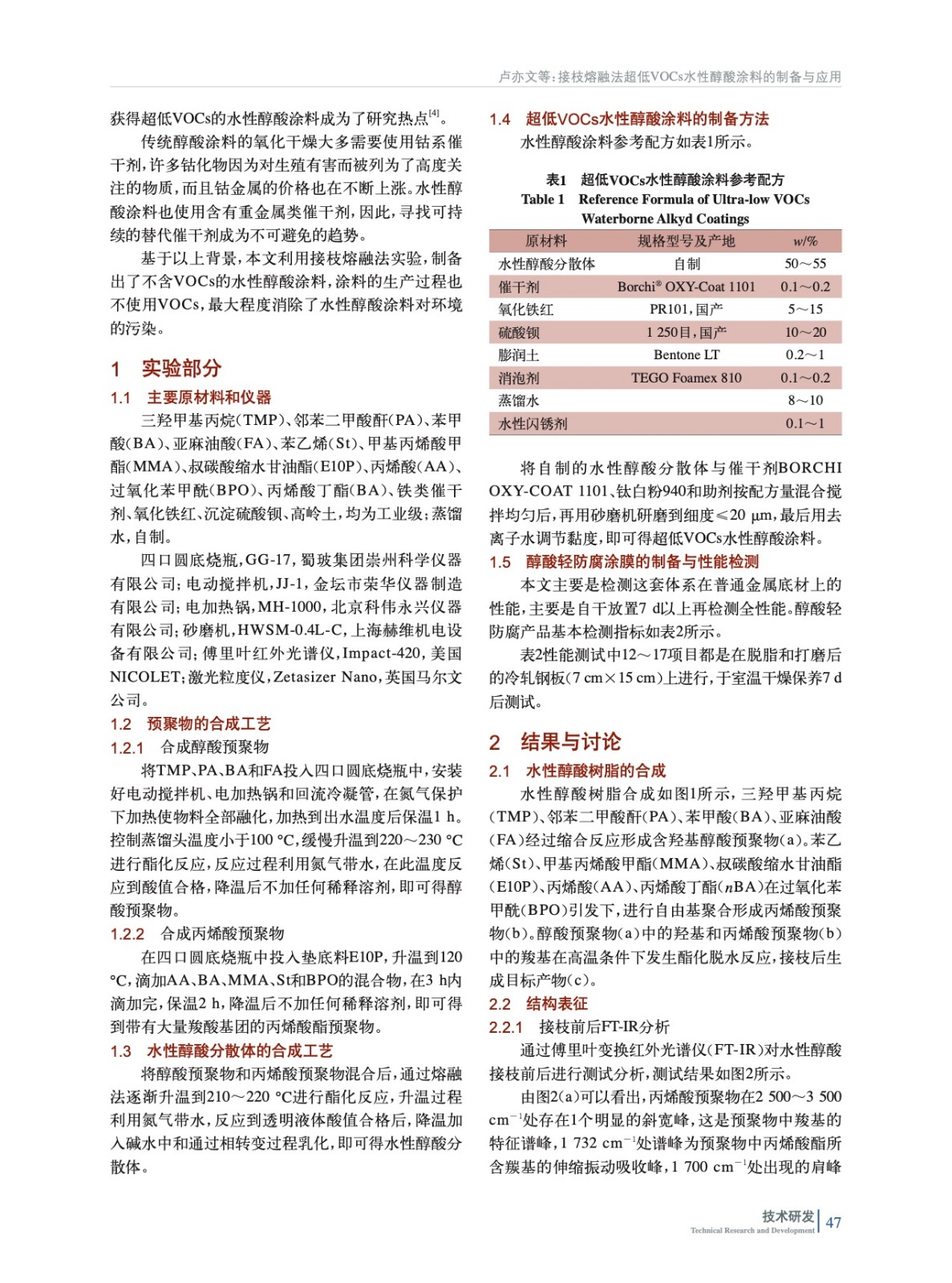 接枝熔融法超低VOCs水性醇酸涂料的制備與應(yīng)用