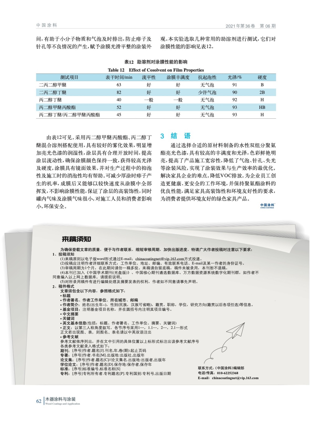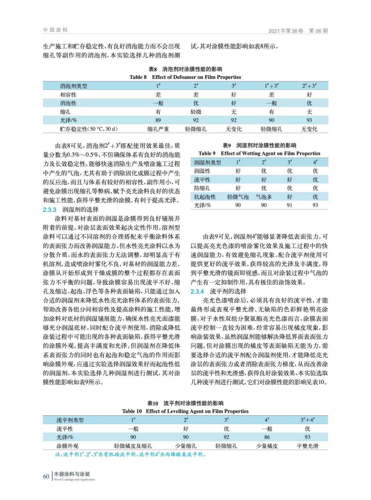 采用水性羥基丙烯酸分散體和親水性固化劑為主要成膜物質,通過試驗選擇合適的助劑制備了家具用高性能水性雙組分聚氨酯亮光色漆。該涂料具有高光澤、豐滿艷麗的特點,完全滿足家具表面裝飾要求,同時討論了影響涂膜性能及光澤的各種因素。