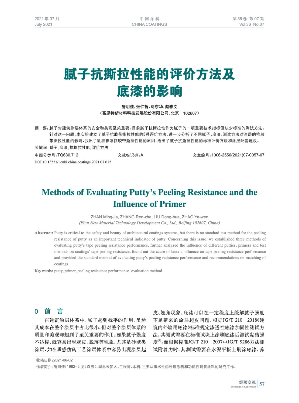 本文系作者@詹明佳,張仁哲,劉東華,趙雅文 授權中國涂料網發表,并經中國涂料網編輯,未經允許不得轉載,如需轉載請聯系chinacoatingnet@vip.163.com