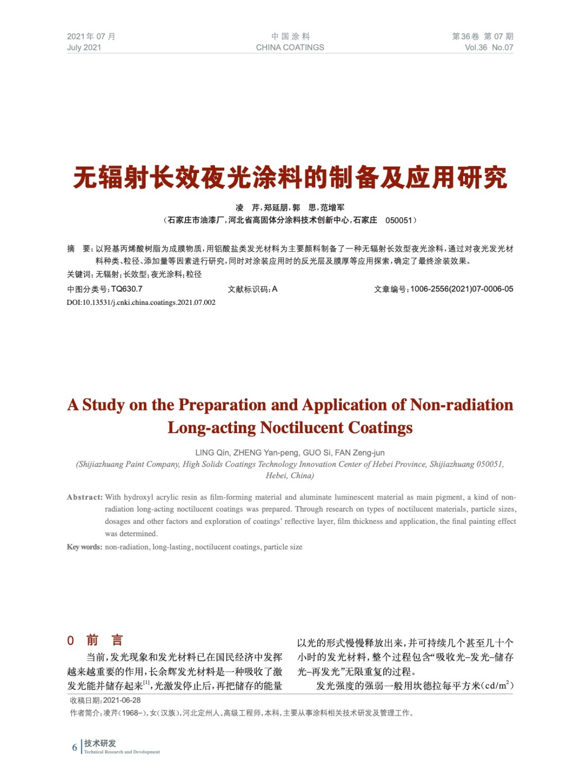 本文系作者@凌 芹,鄭延朋,郭 思,范增軍 授權中國涂料網發表,并經中國涂料網編輯,未經允許不得轉載,如需轉載請聯系chinacoatingnet@vip.163.com