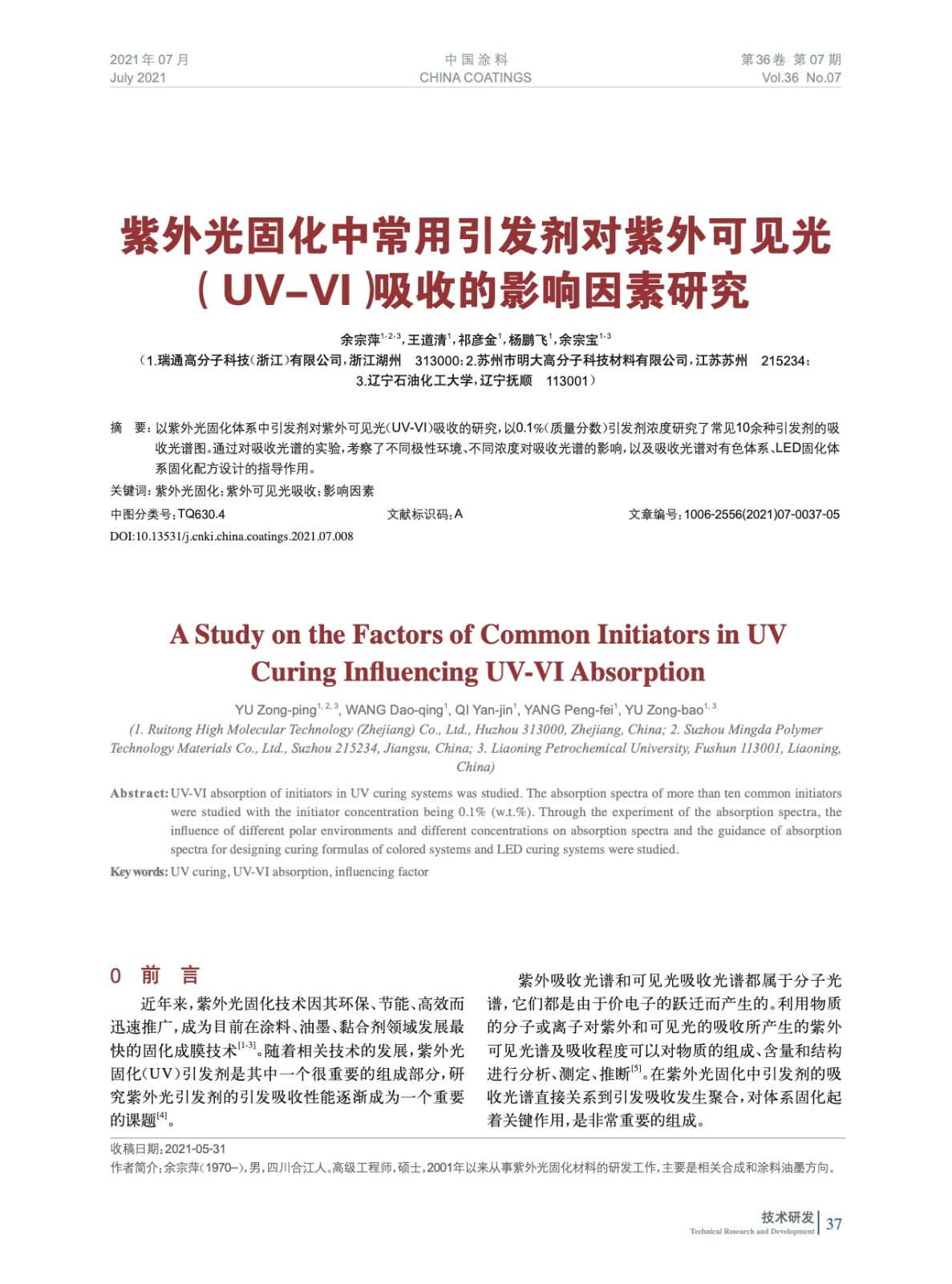 發表于2021-08-30 14:51:55| 次閱讀| 來源中國涂料| 作者余宗萍,王道清,祁彥金,楊鵬飛,余宗寶