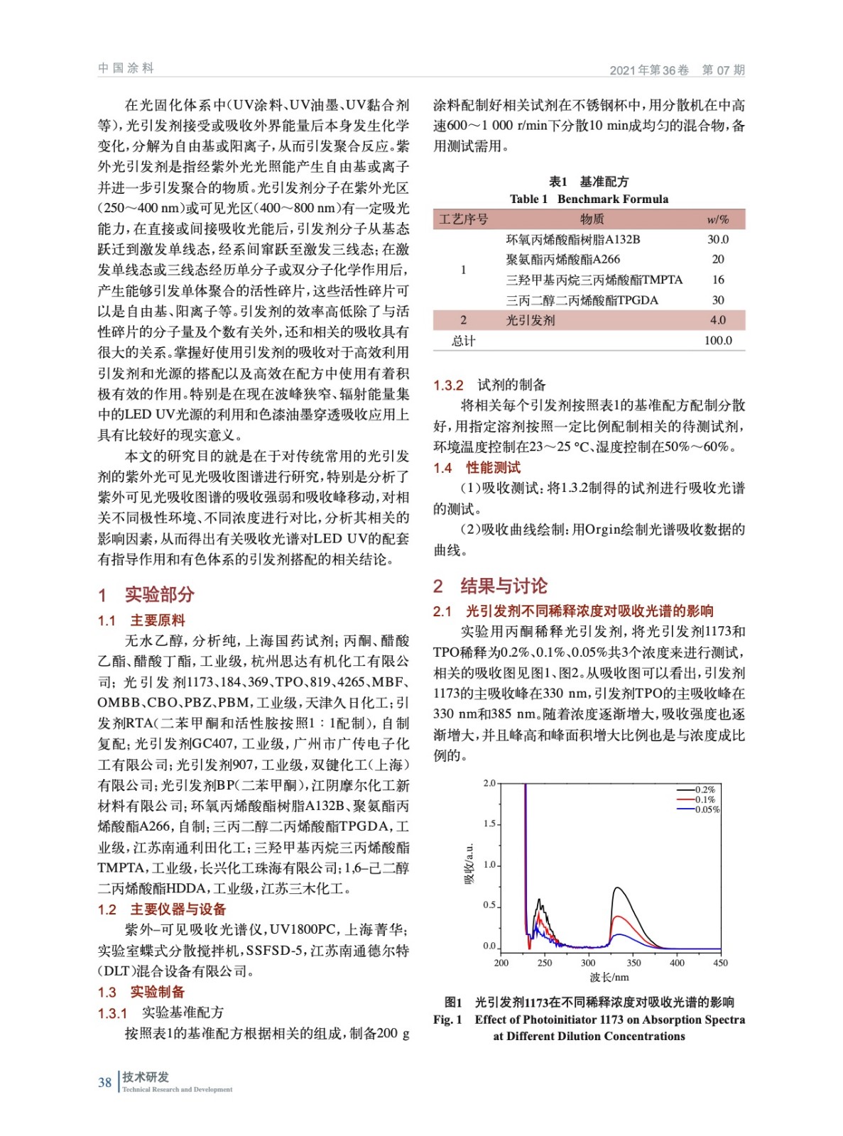 紫外光固化中常用引發劑對紫外可見光(UV-VI)吸收的影響因素研究