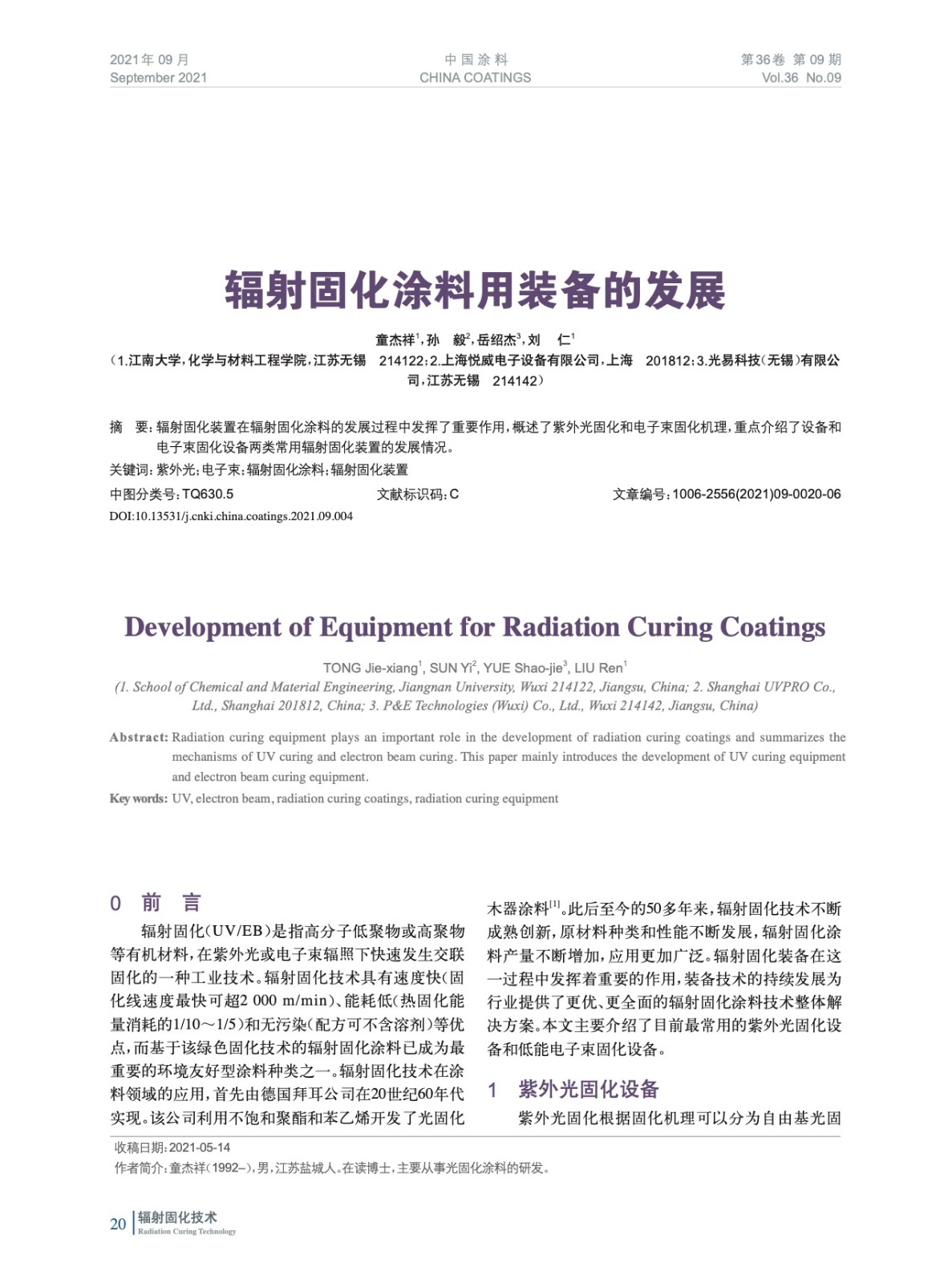 輻射固化裝置在輻射固化涂料的發展過程中發揮了重要作用,概述了紫外光固化和電子束固化機理,重點介紹了設備和電子束固化設備兩類常用輻射固化裝置的發展情況。