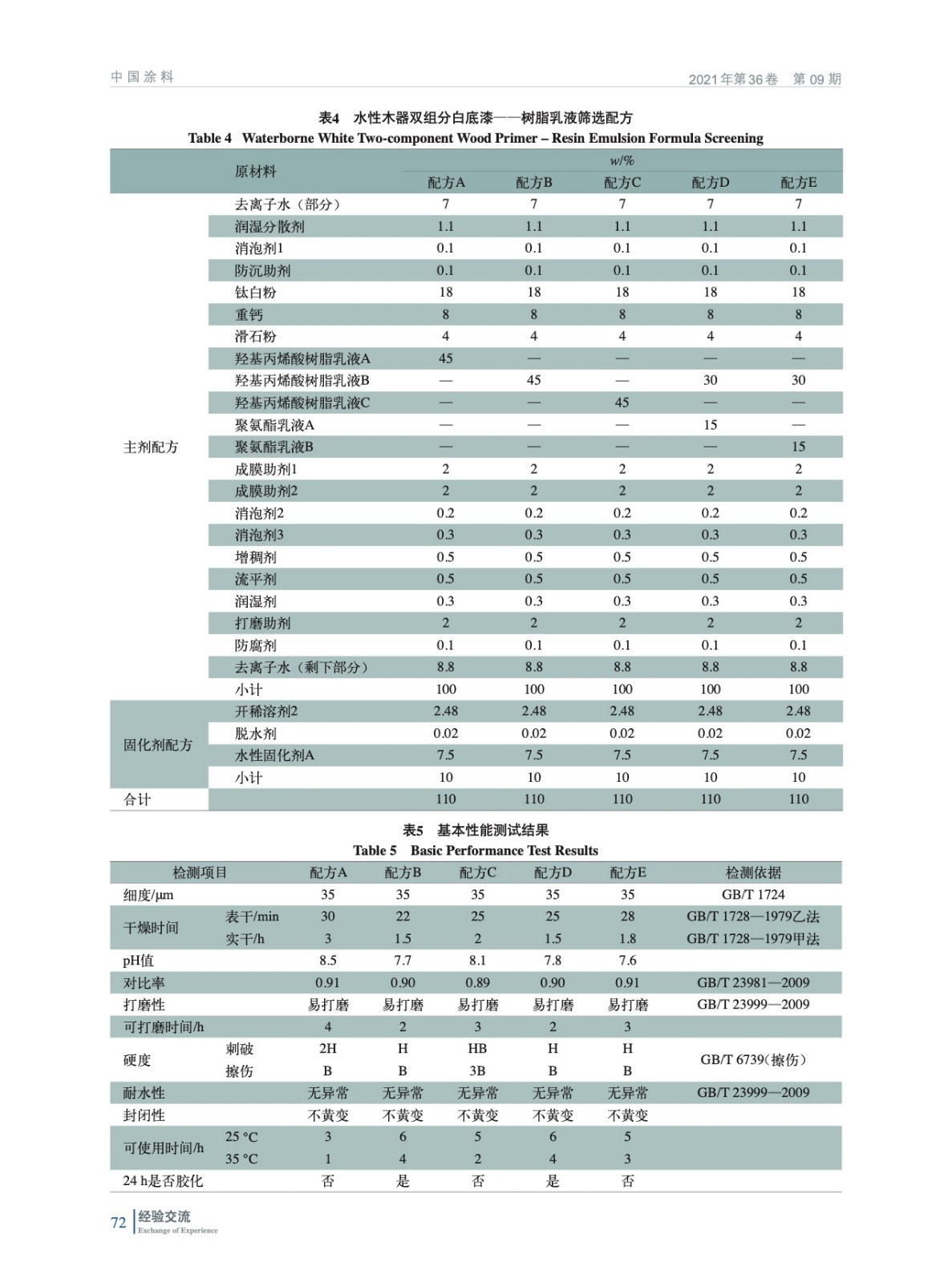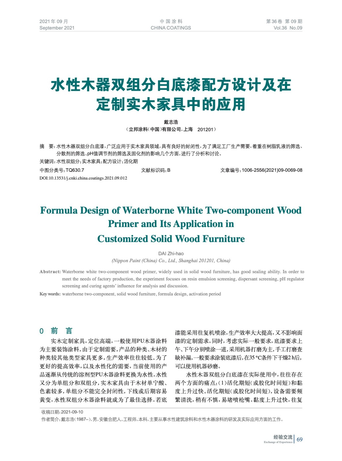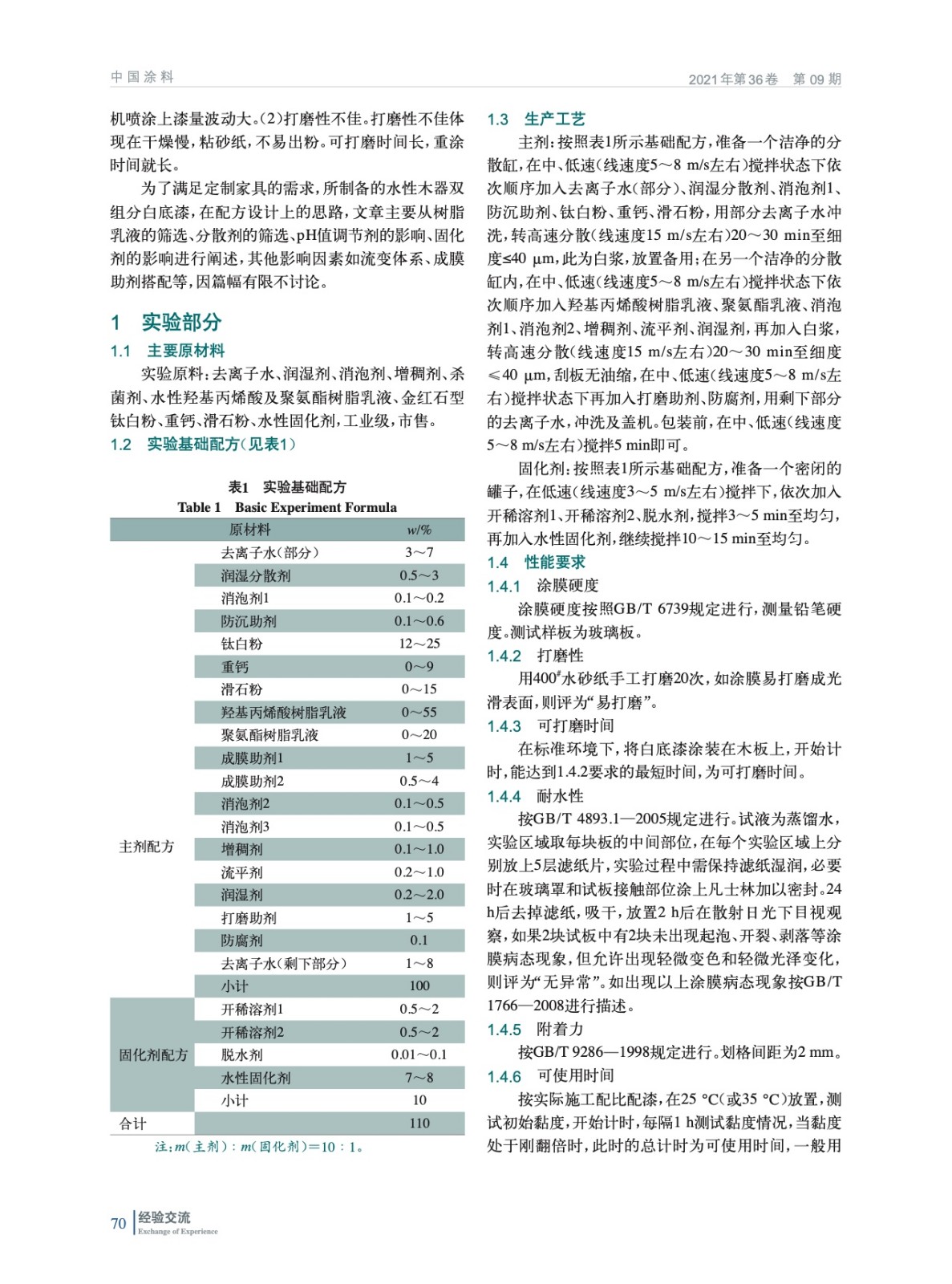 水性木器雙組分白底漆配方設(shè)計及在定制實木家具中的應(yīng)用