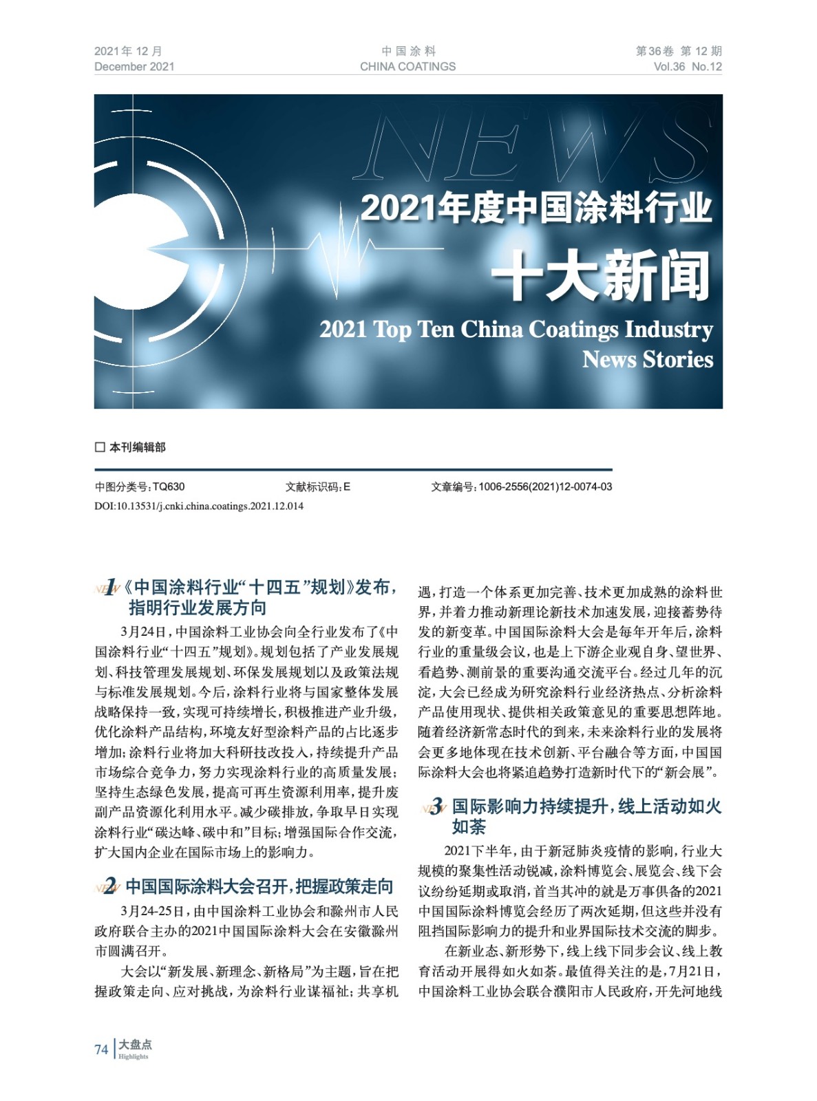 2021年度中國涂料行業十大新聞