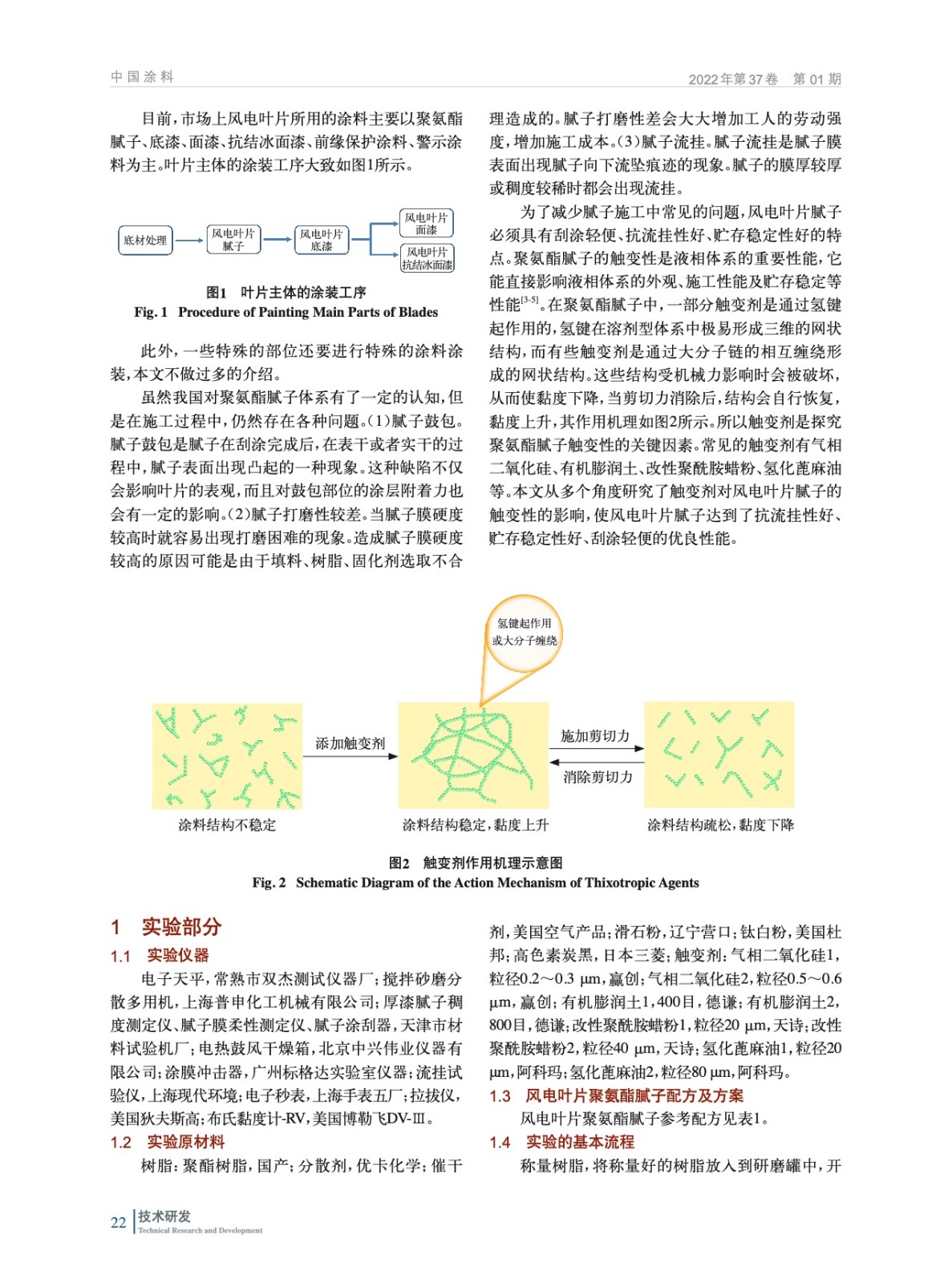 實驗通過多個角度對風電葉片膩子的觸變性進行了探究。測試結果表明,觸變助劑對膩子的機械性能幾乎無影響,通過有機膨潤土和改性聚酰胺蠟粉的合理搭配使用,既能讓風電葉片聚氨酯膩子具有優良的貯存穩定性,又使其有好的抗流掛性和刮涂性。