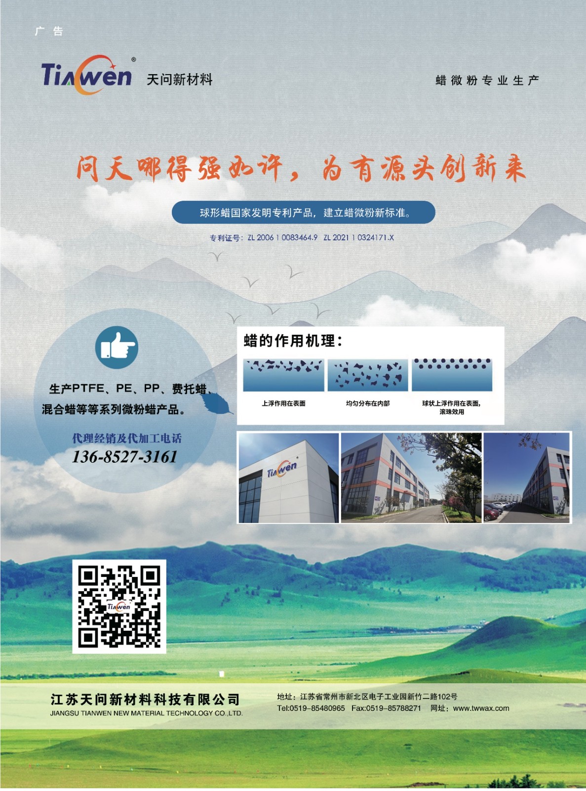 封1:朗盛特殊化學品有限公司;封2:江蘇天問新材料科技有限公司;封3:公益廣告;封4:上海華誼精細化工有限公司技術中心