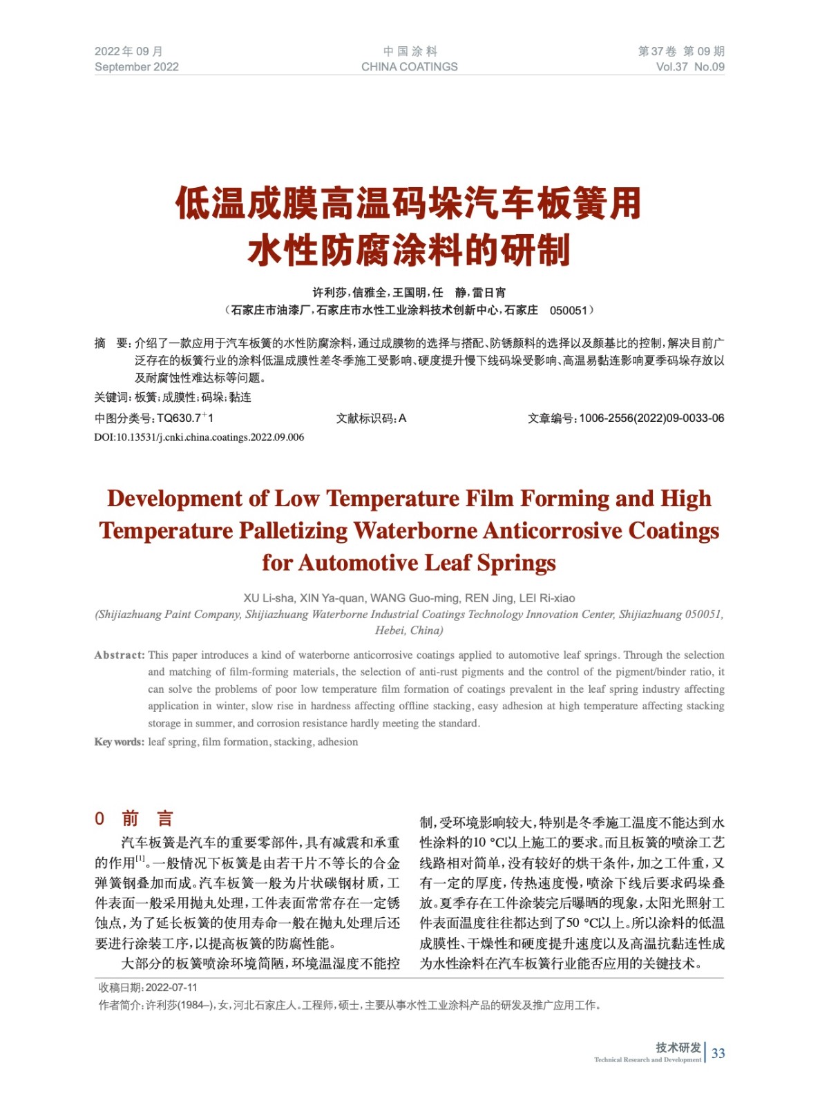 本文系作者@許利莎,信雅全,王國明,任 靜,雷日宵 授權中國涂料網發表,并經中國涂料網編輯,未經允許不得轉載,如需轉載請聯系chinacoatingnet@vip.163.com