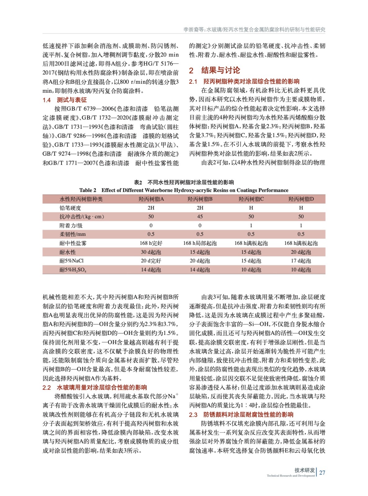 水玻璃/羥丙水性復合金屬防腐涂料的研制與性能研究