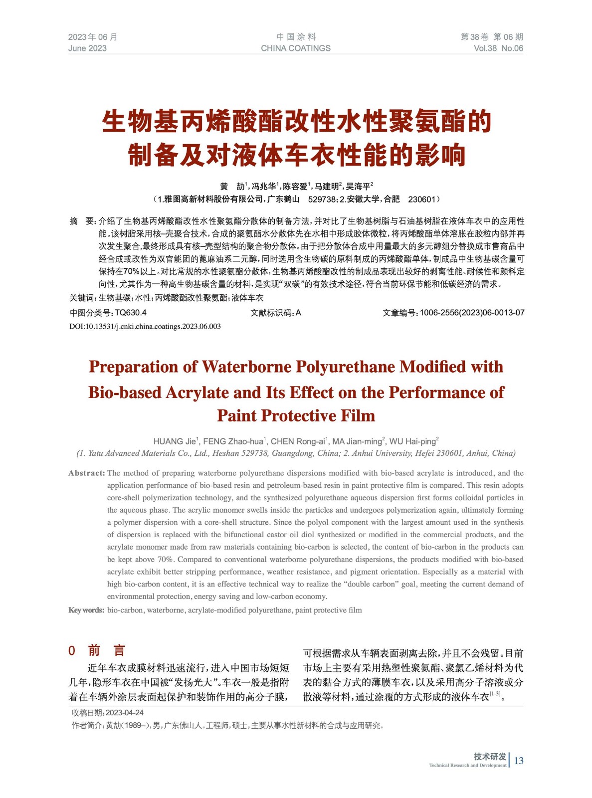 發表于2023-10-23 16:35:24| 次閱讀| 來源中國涂料| 作者黃 劼,馮兆華,陳容愛,馬建明,吳海平