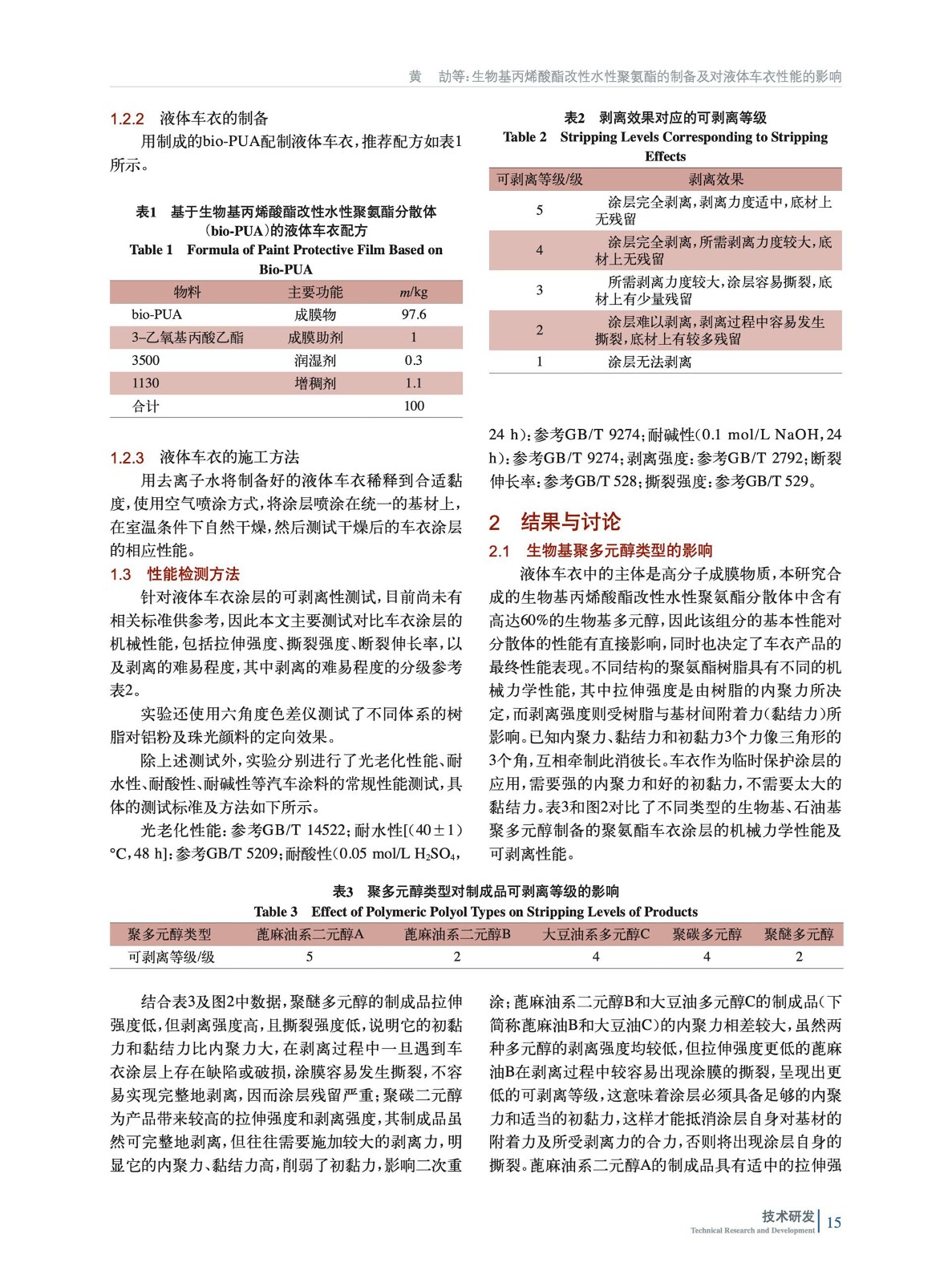 生物基丙烯酸酯改性水性聚氨酯的制備及對液體車衣性能的影響