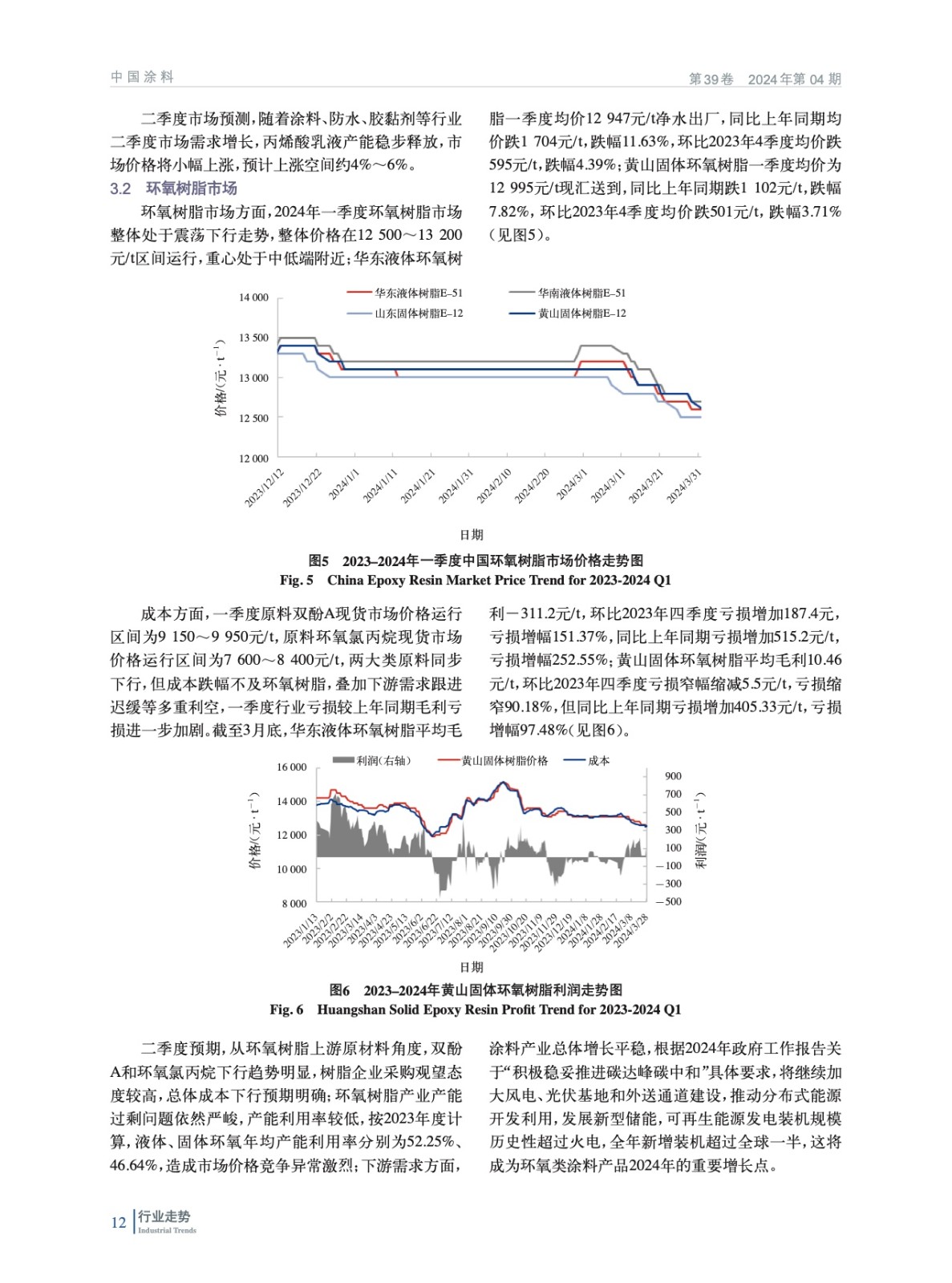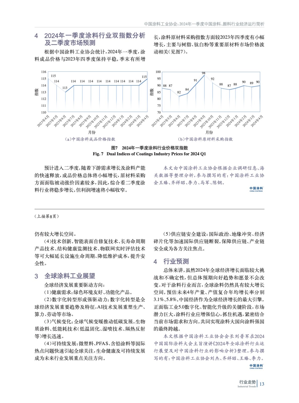 摘要:簡析了2024年第一季度我國涂料行業生產、經營和涂料、無機顏料行業進出口簡況,并對丙烯酸乳液、環氧樹脂等重點成膜物質市場進行了綜述和預測。對2024年一季度涂料行業雙指數進行了分析,并對二季度市場進行了預測。