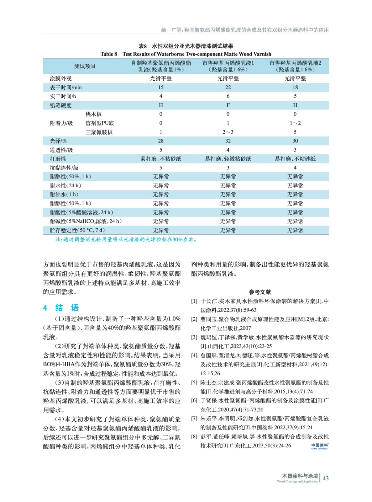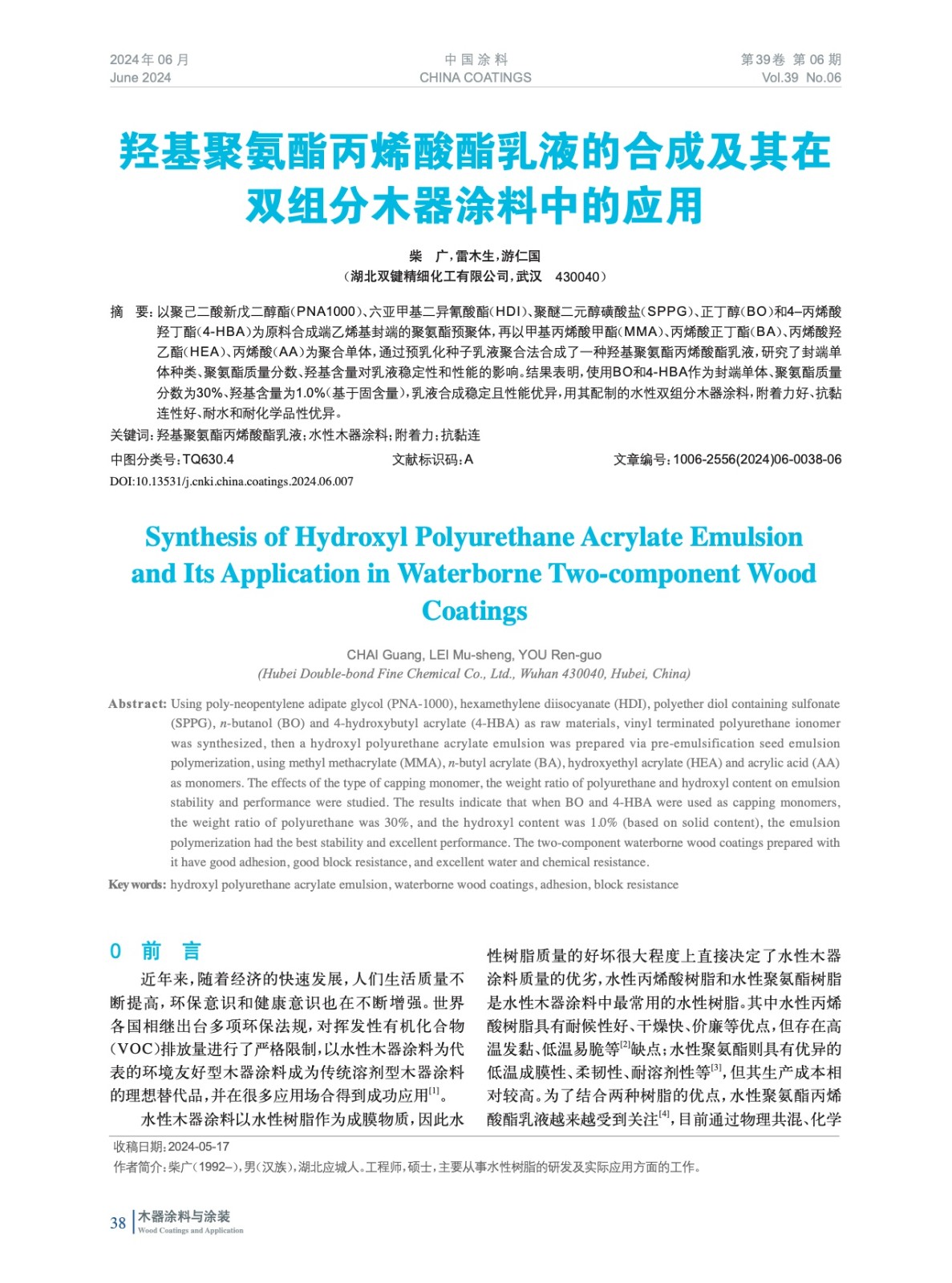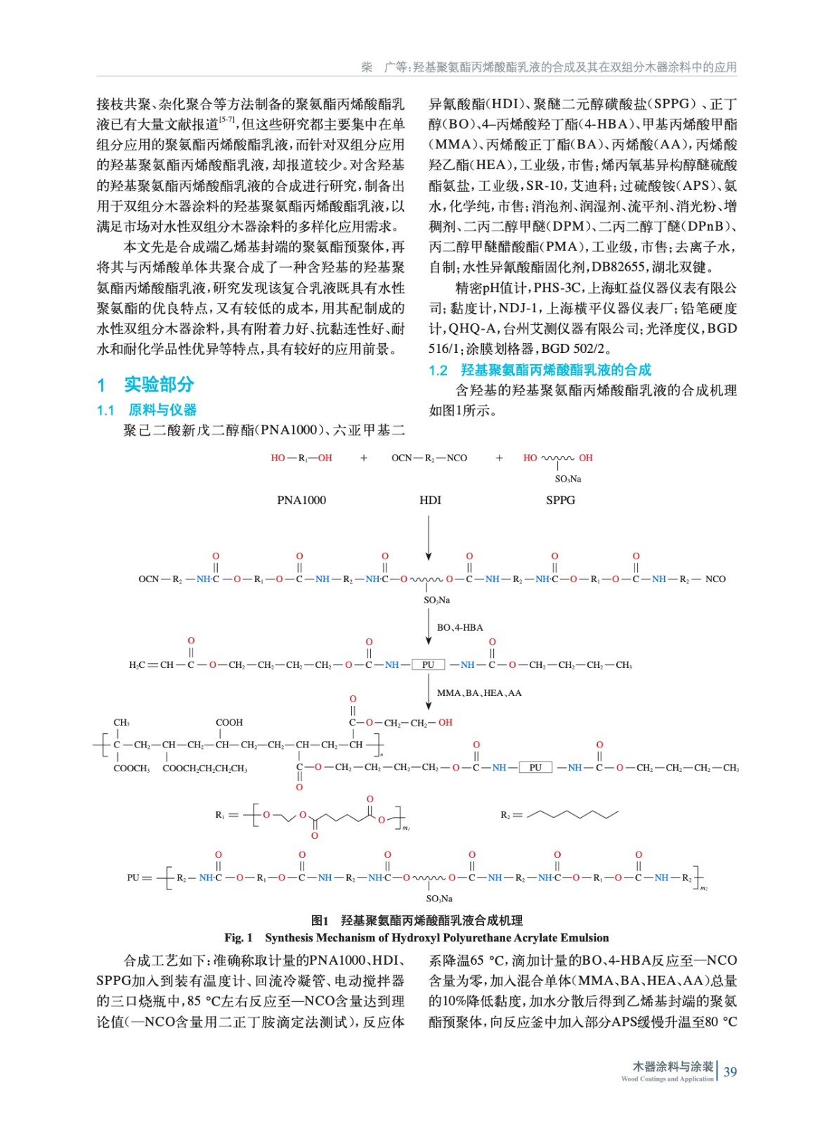 羥基聚氨酯丙烯酸酯乳液的合成及其在雙組分木器涂料中的應用