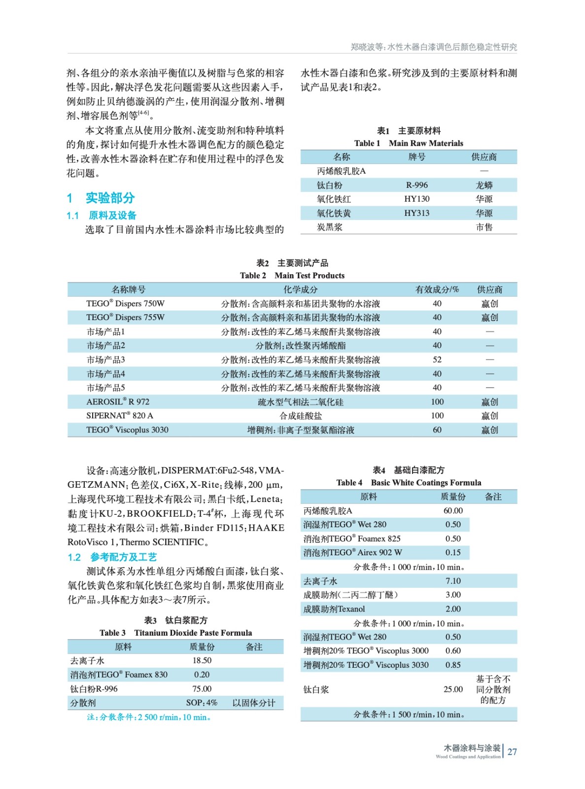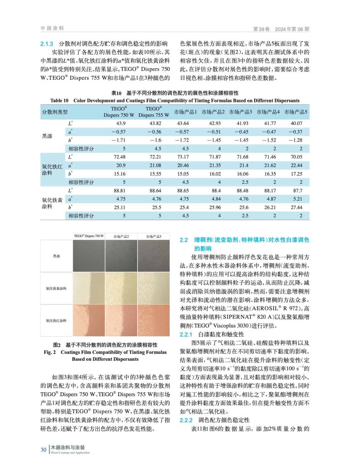 以水性單組分丙烯酸木器白面漆為研究對象,探討了分散劑、流變助劑和特種填料對調色配方中顏料穩定性的影響,提出了優化顏料分散和抑制浮色發花現象的解決方案。