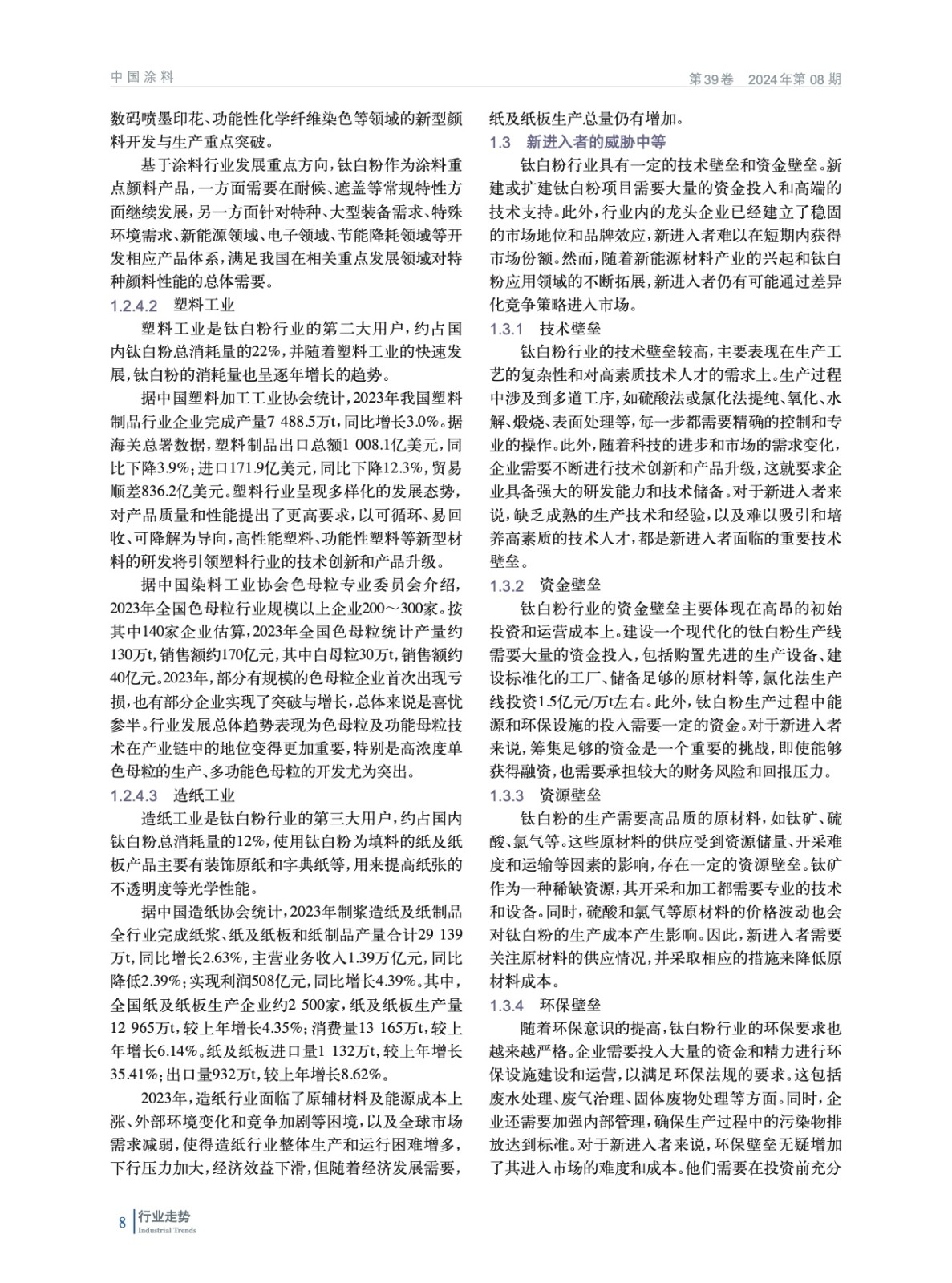 摘要:對2023年中國鈦白粉行業的經濟運行情況進行了詳細分析,涵蓋了生產、需求、競爭格局、政策環境以及技術發展等多個方面。通過對行業數據和市場趨勢的深入研究,揭示了當前鈦白粉行業面臨的挑戰與機遇,并提出了針對性的建議,以期促進行業的可持續健康發展。