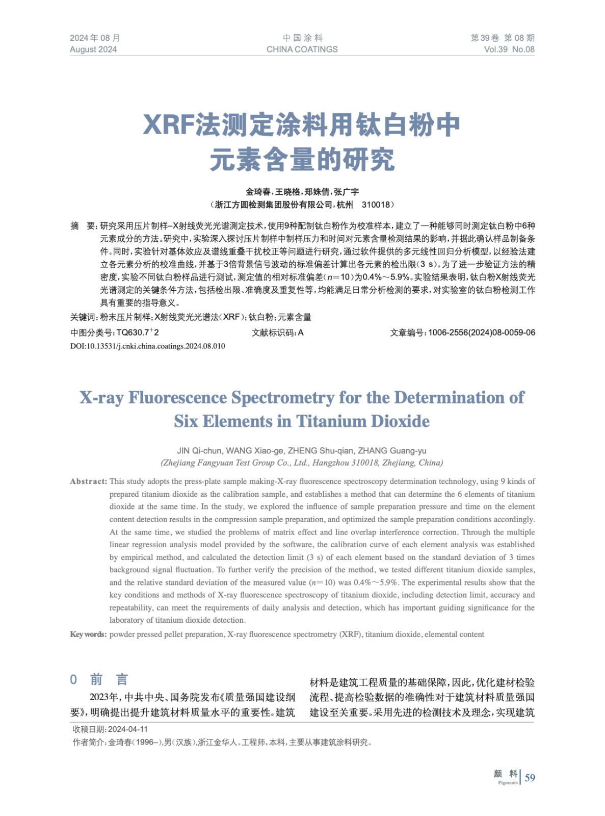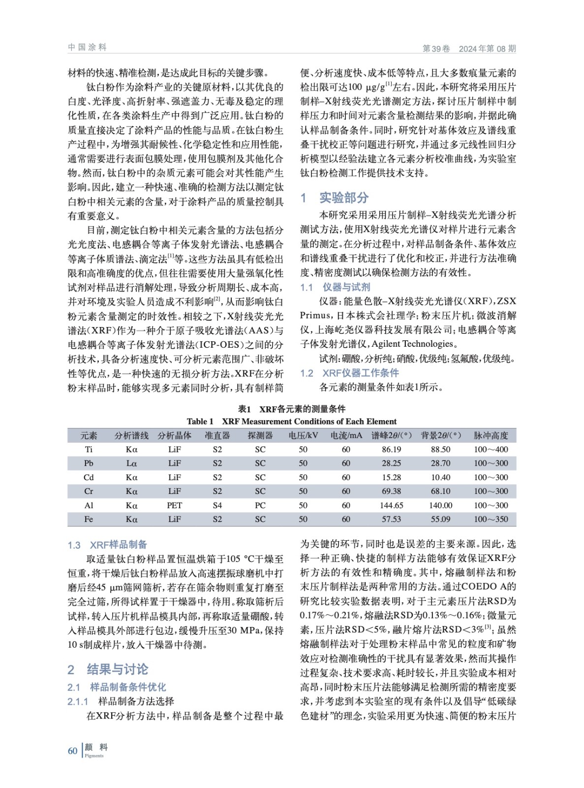 XRF法測定涂料用鈦白粉中元素含量的研究