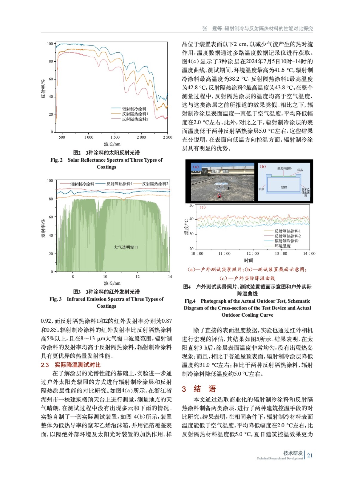 摘要:通過選取商業化的輻射制冷涂料與反射隔熱涂料進行全方位的對比,探究兩種材料性能差異。結果表明,在戶外環境溫度最高為41.6 ℃的測試條件下,輻射制冷涂料比反射隔熱涂料溫度低5.0 ℃,可以實現比大氣環境溫度低2.0 ℃的制冷效 果,在夏日控溫效果更為顯著,且輻射制冷涂料的施工用量及耐人工氣候老化的性能均優于反射隔熱涂料,可能更有利于其大面積應用。