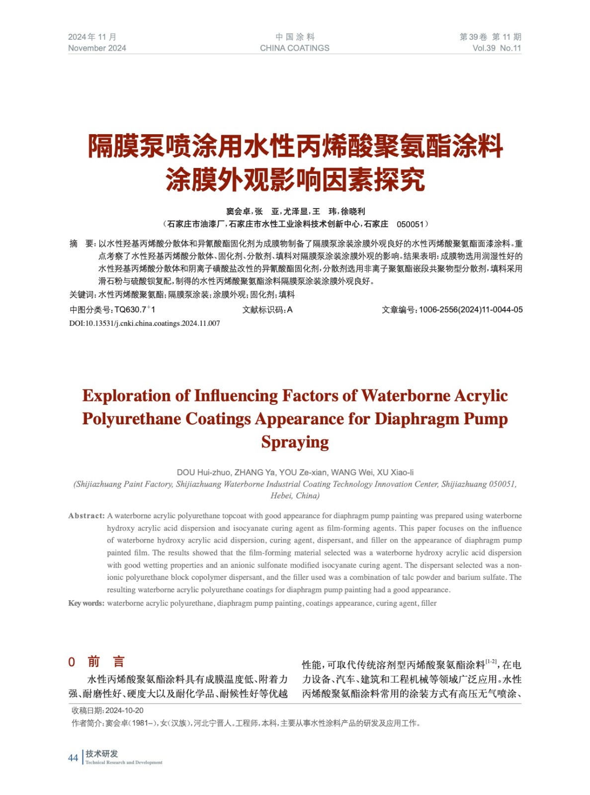 發表于2025-02-28 10:05:55| 次閱讀| 來源中國涂料| 作者竇會卓,張 亞,尤澤顯,王 瑋,徐曉利