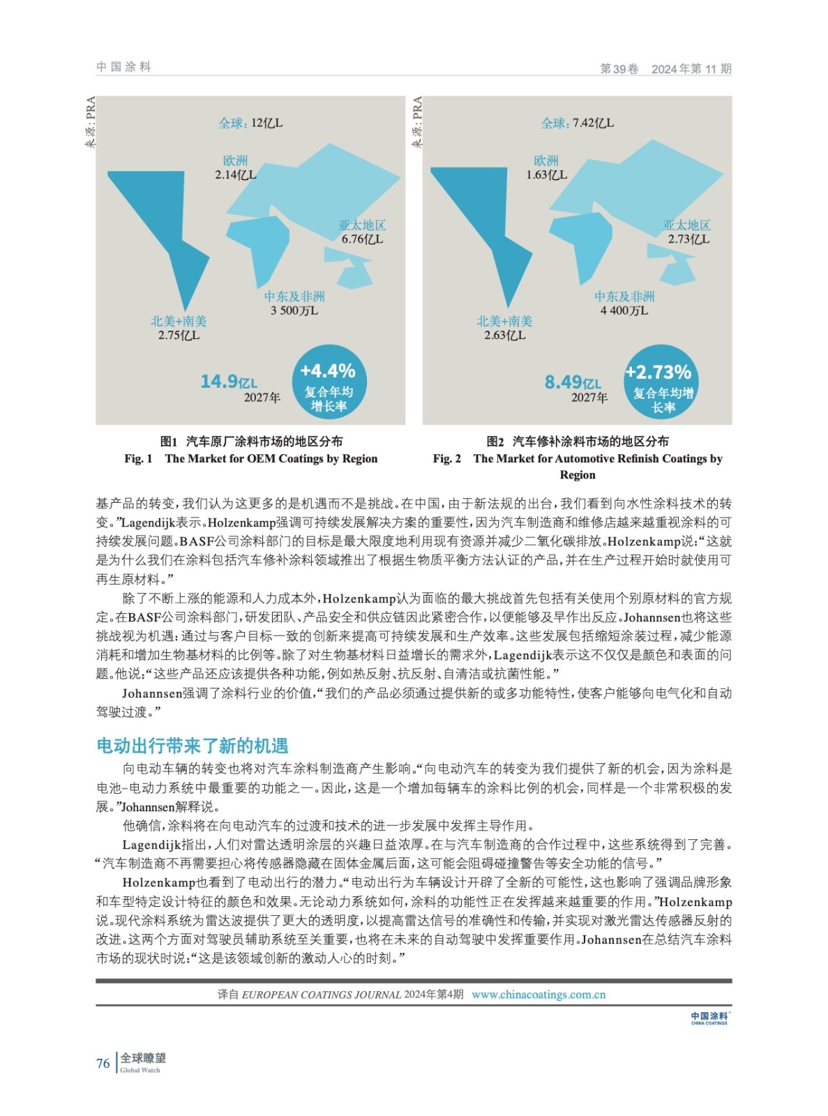摘要:編者按:全球經濟正在緩慢復蘇,但我們還不能說已經全面復蘇。主要增長在亞洲,而歐洲則停滯不前。然而,PRA公司的市場研究人員預測,到2027年,汽車原廠涂料市場將以每年4.4%的速度增長,而汽車修補涂料的增長速度為2.7%。