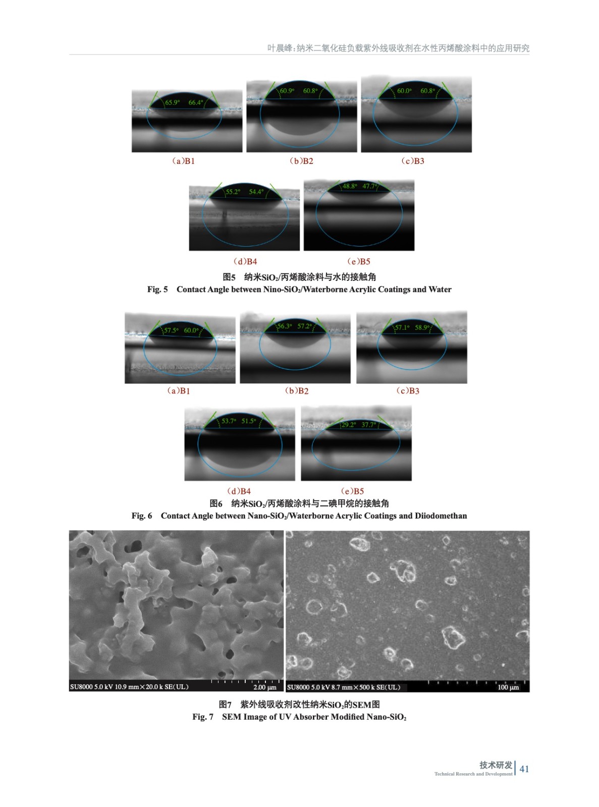摘要:研究旨在制備負載紫外線的納米二氧化硅(SiO2)改性的水性丙烯酸工業涂料,并研究改性納米SiO2含量對涂料性能的影響。采用了接觸角儀、掃描電鏡、常規物理機械性能等對多種手段對涂膜進行表征。研究結果表明,隨著改性納米SiO2含量的增加,涂層具有較好的常規物理機械性能,并且光澤度有所提高。這表明,改性納米SiO2對涂料的增韌和增強效果顯著,能夠改善涂層的常規物理機械性能和表面性能。然而,當改性納米SiO2含量達到一定值時,增加含量并不能繼續提高涂層的光澤度,甚至會導致涂層表面性能變差。這是因為,改性納米SiO2在涂層中的分散度和填充效果受到含量的影響,達到一定含量后,納米SiO2顆粒之間的互相聚集和堆積現象會加劇,使涂層的表面質量受到損害。