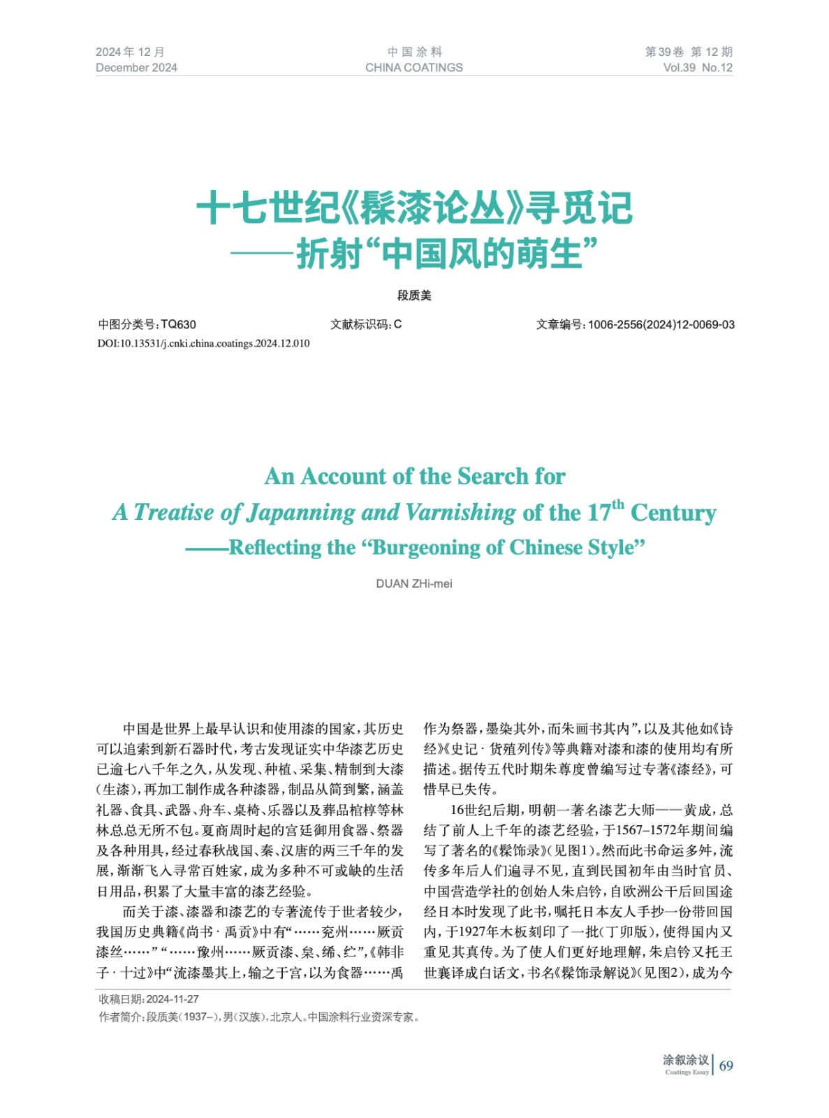 十七世紀《髹漆論叢》尋覓記——折射“中國風的萌生”