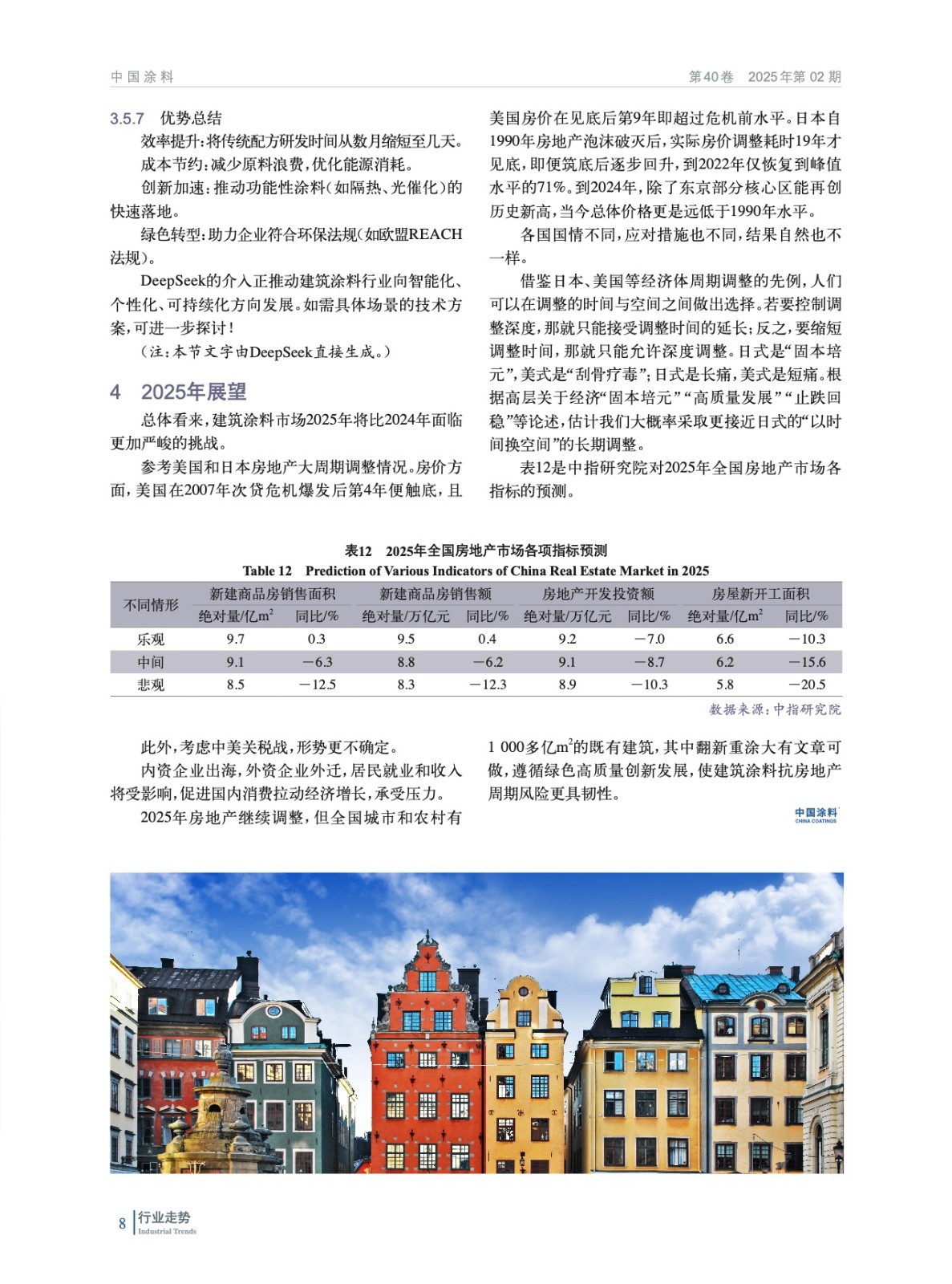 摘要:介紹了2024年我國房地產(chǎn)行業(yè)和建筑涂料市場發(fā)展狀況,總結(jié)了建筑涂料2024年產(chǎn)銷現(xiàn)狀,指出在當前形勢下,要增強建筑涂料業(yè)抗房地產(chǎn)周期風險韌性,做大存量房翻新重涂市場,做強仿石涂料拳頭產(chǎn)品,擁抱綠色節(jié)能潮流,創(chuàng)新建筑涂料發(fā)展,開發(fā)DeepSeek等在建筑涂料領(lǐng)域的應(yīng)用,最后對2025年建筑涂料市場進行了展望。
