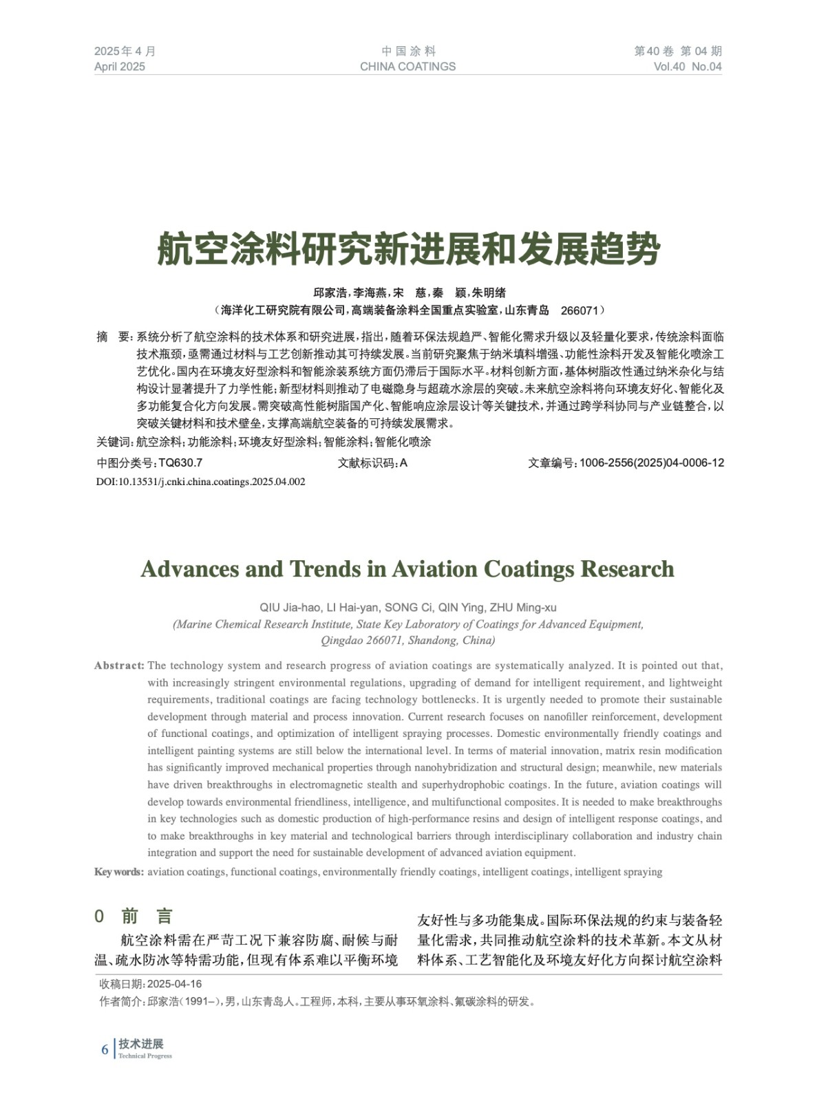 本文系作者@邱家浩,李海燕,宋 慈,秦 穎,朱明緒 授權中國涂料網發表,并經中國涂料網編輯,未經允許不得轉載,如需轉載請聯系chinacoatingnet@vip.163.com