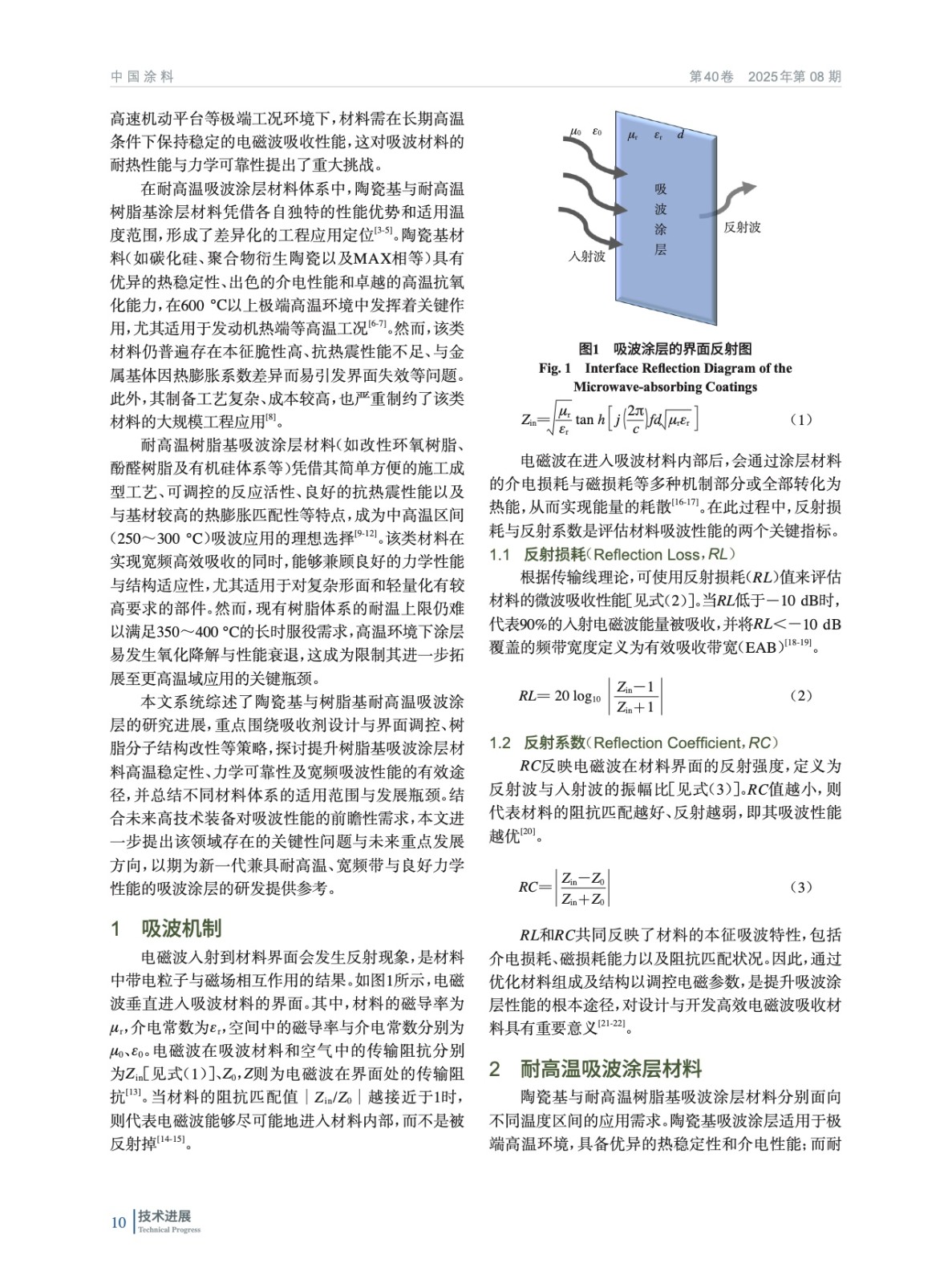 摘要:系統(tǒng)綜述了陶瓷基與樹脂基吸波涂層材料的研究進展,重點探討了吸收劑設計與界面調(diào)控、樹脂分子結構改性等策略對提升樹脂基涂層高溫穩(wěn)定性、力學可靠性及寬頻吸波性能的協(xié)同作用。當前在吸波涂層高溫電磁參數(shù)演變規(guī)律、失效機制及長效性能預測等方面仍面臨挑戰(zhàn)。