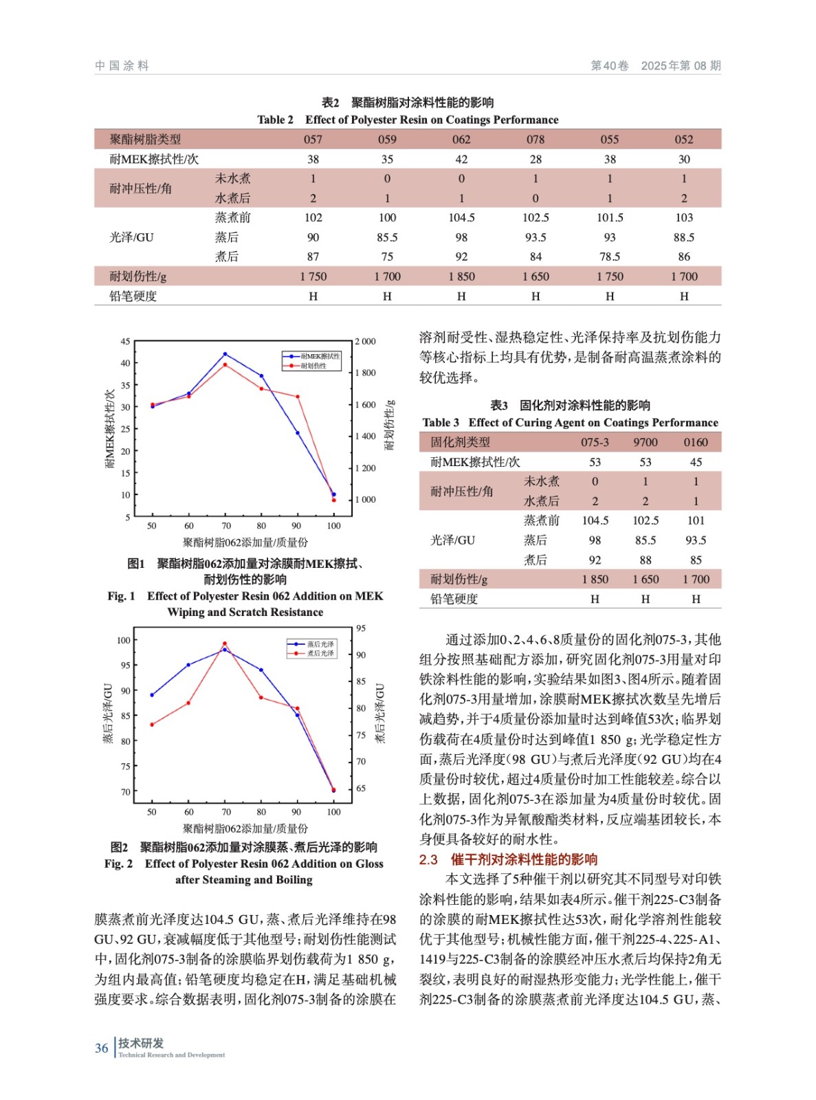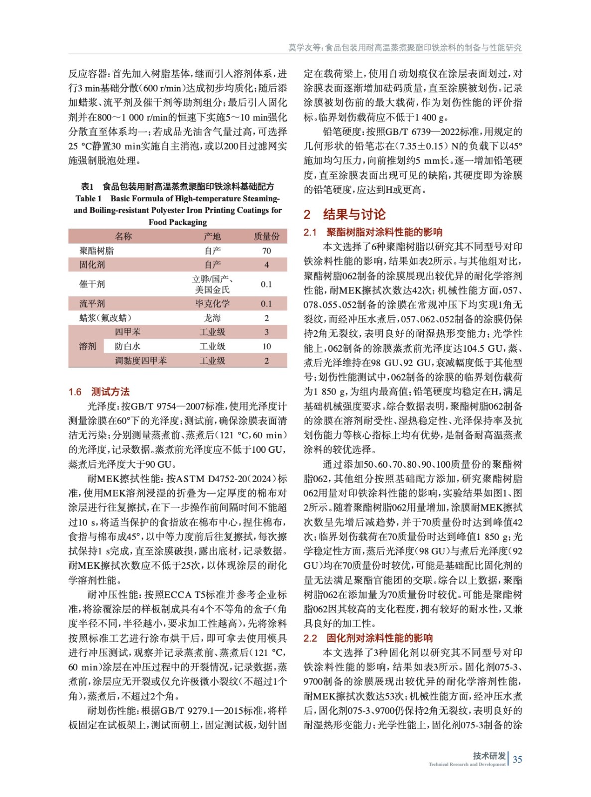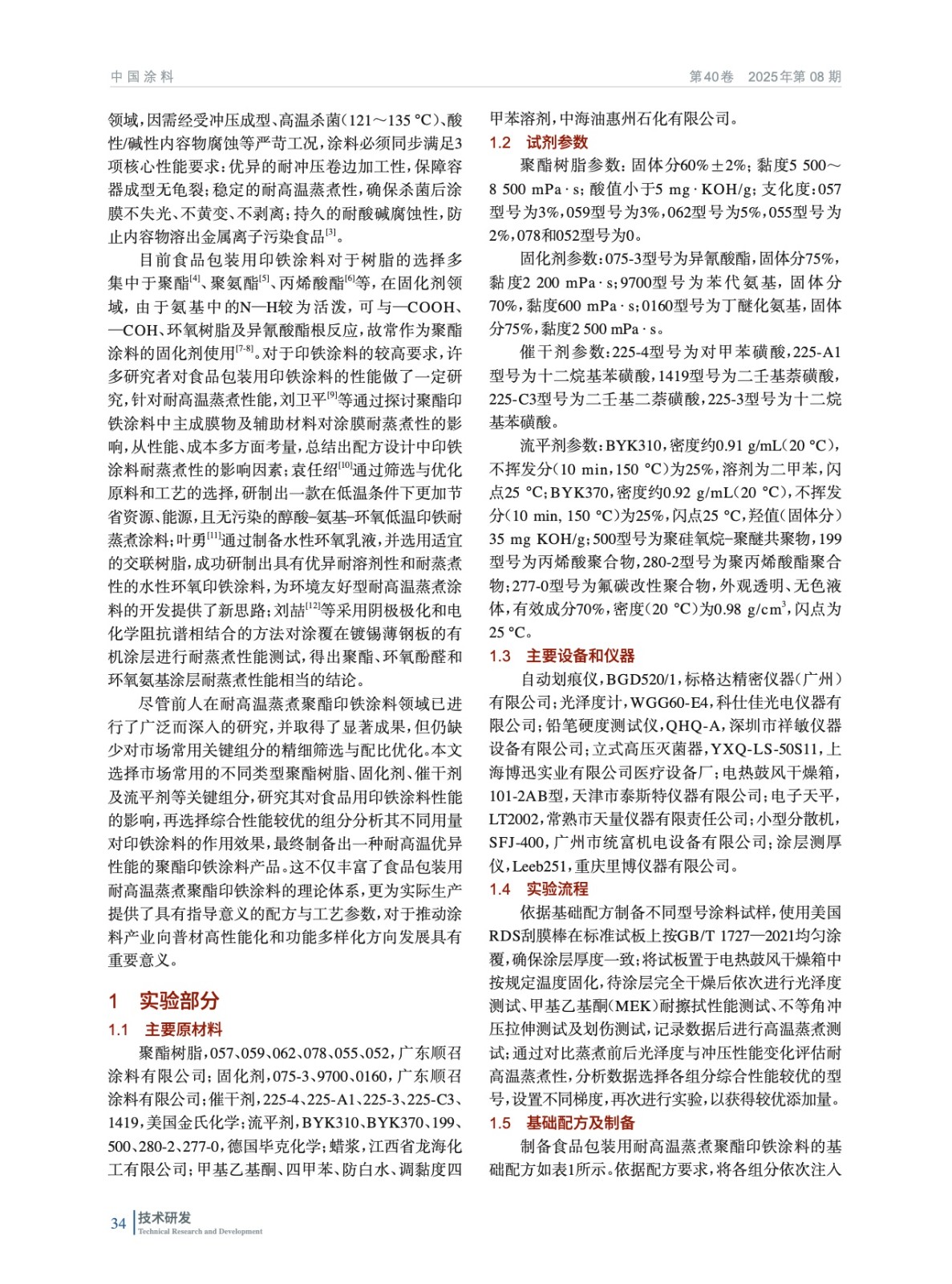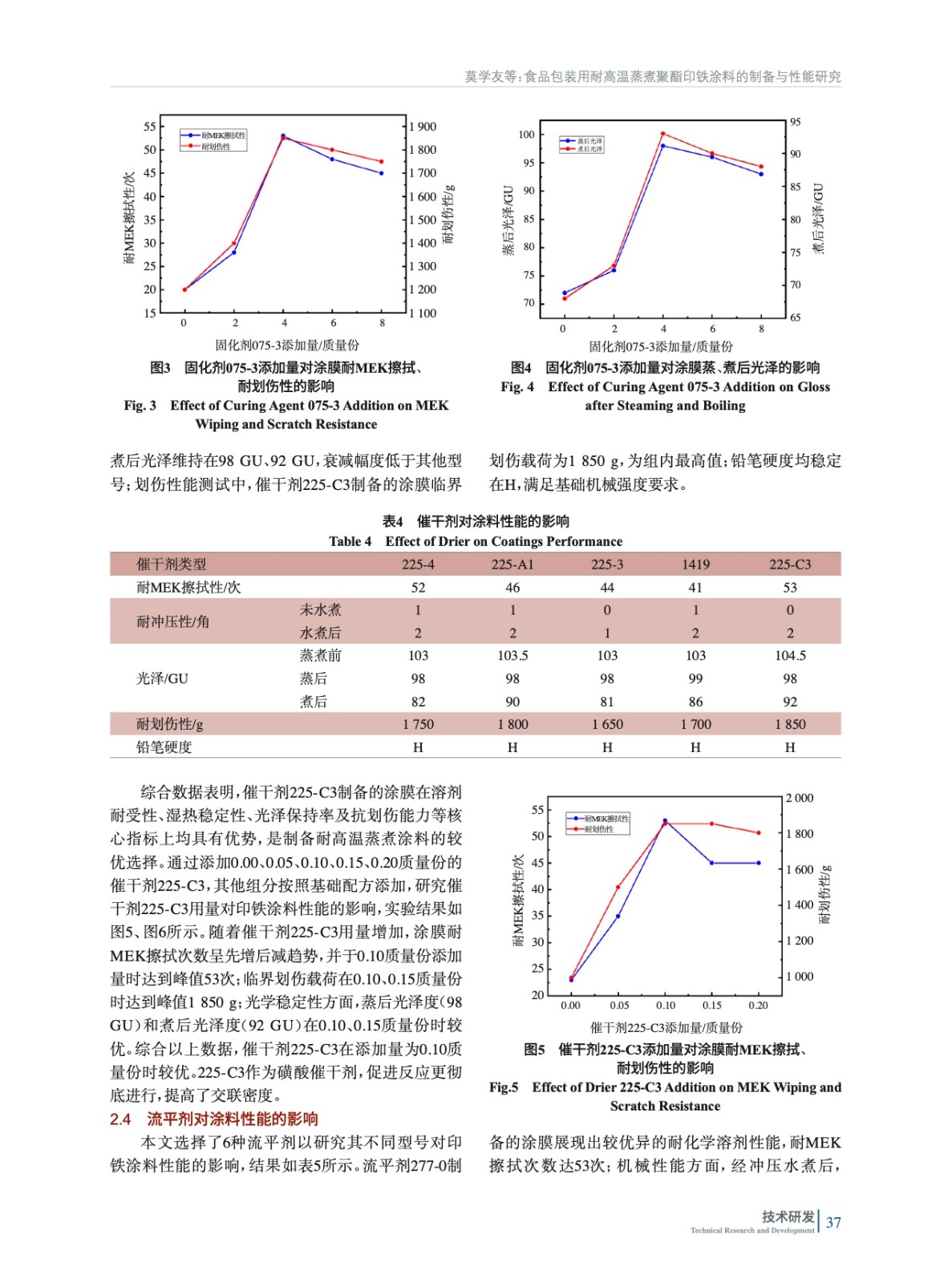 食品包裝用耐高溫蒸煮聚酯印鐵涂料的制備與性能研究