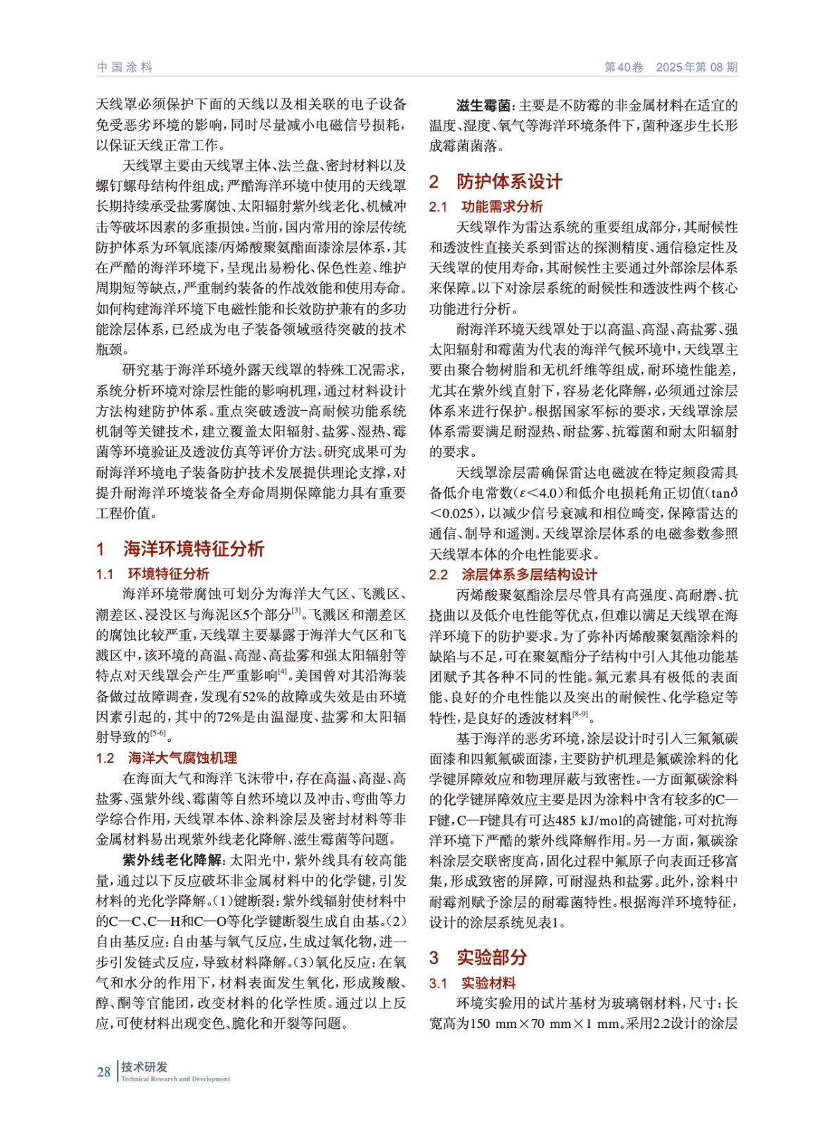 耐海洋環(huán)境天線罩防護(hù)涂層體系應(yīng)用研究