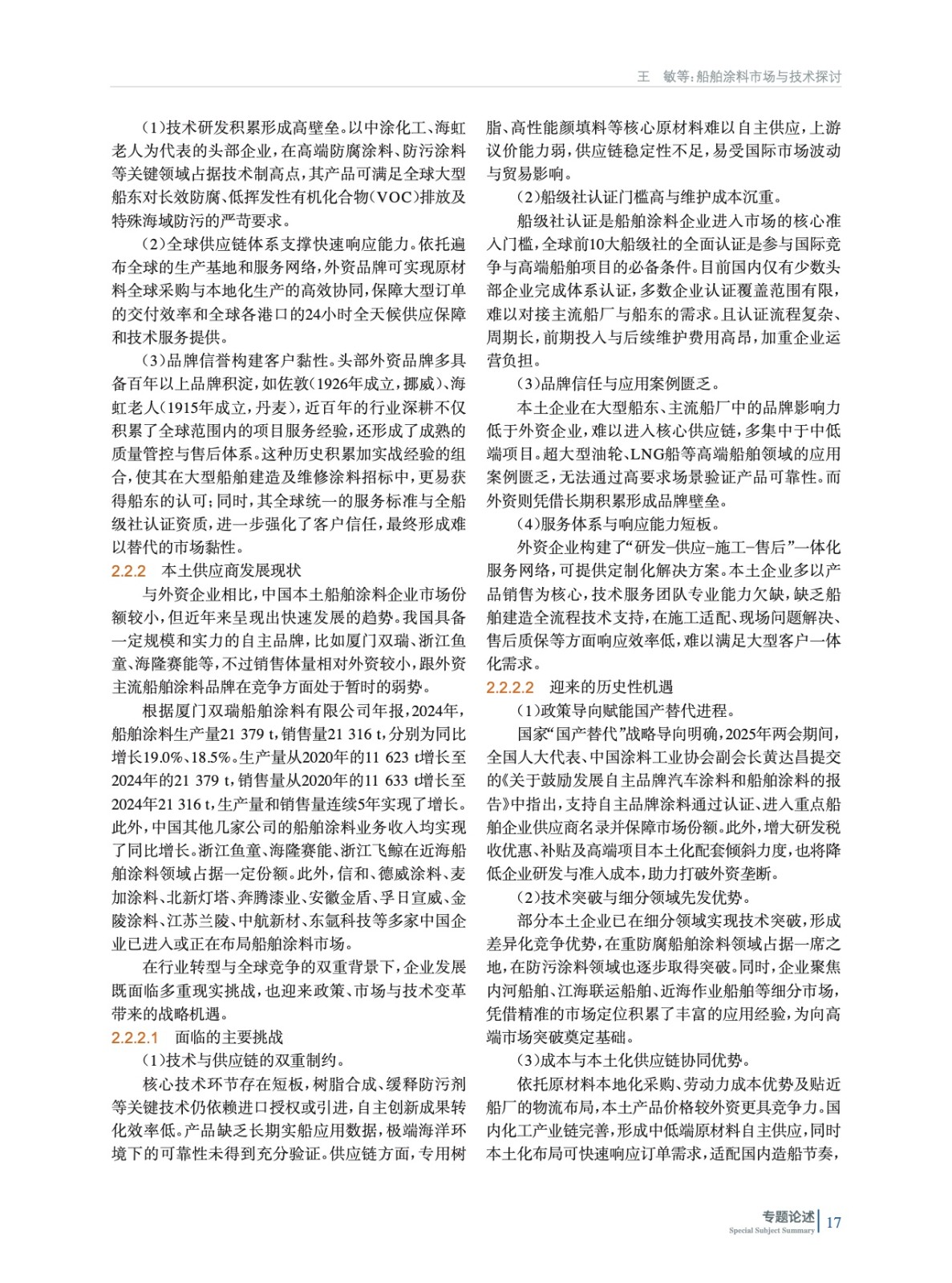 船舶涂料市場與技術探討